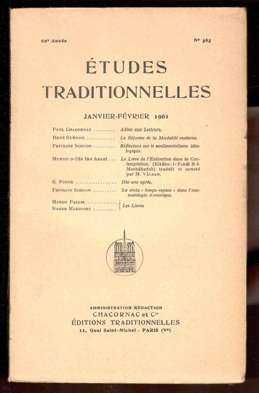 Études Traditionnelles. 62e année. N°363. Janvier-Février 1961