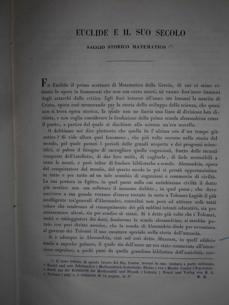EUCLIDE e il suo secolo. Saggio storico matematico. Saggio di una Bibliografia Euclidea.