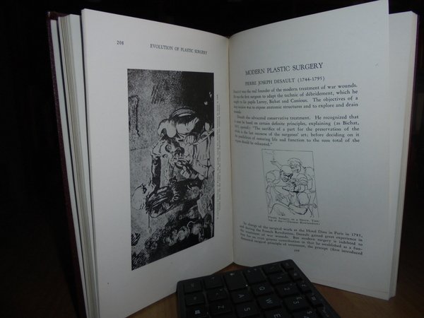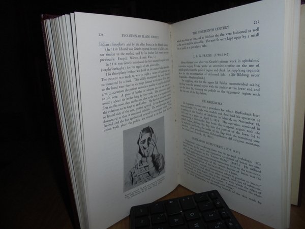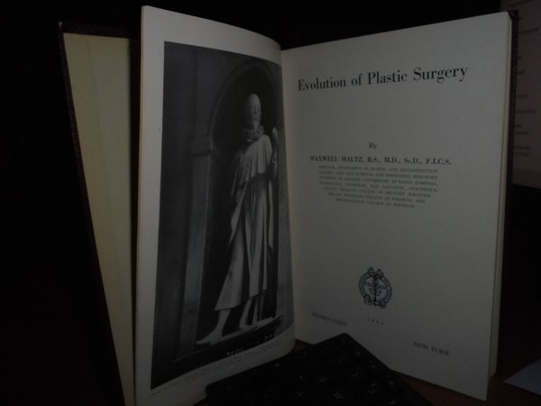 By MAXWELL MALTZ. New York, Froben Press, 1946. Evolution of Plastic Surgey. In-8°, tela bordeaux con titoli su fondo nero sul piano a al dorso. (xv), 368 pp. con innumerevoli illustrazioni in bianco e nero. Ottimo esemplare. Uff. C - IV - 4
