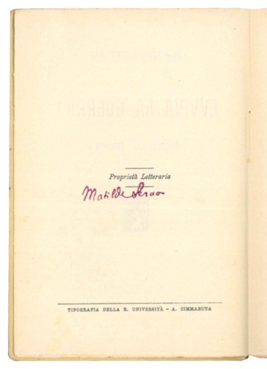 Mm. 195x132. Pp. 132, [4]. Con firma autografa dell'Autrice all'occhiello. Esemplare in barbe, dalla c. 69 alla 77 tracce di aloni. Brossura editoriale con titolo al dorso e alla cop. ant. Brossura con lievi tracce di fioriture. Prima edizione originale.