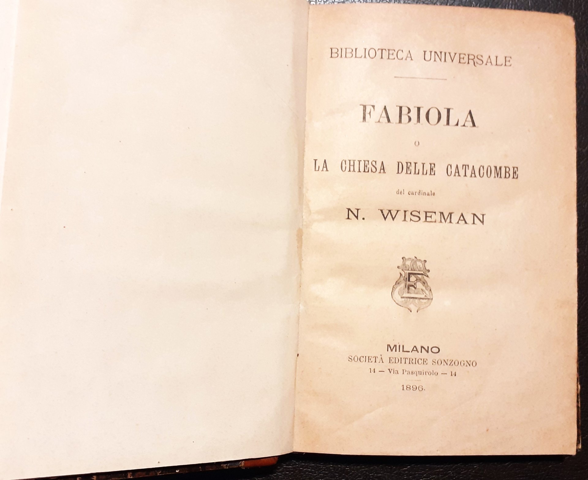 Fabiola La Chiesa delle Catacombe Editrice Sonzogno Milano 1896