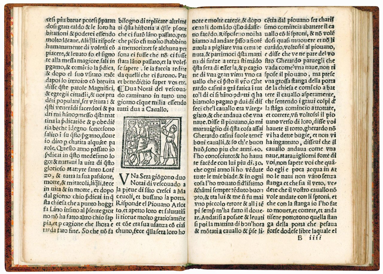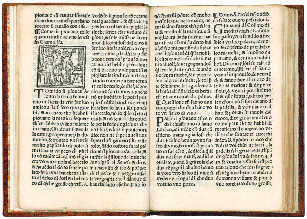 Extremely rare edition issued by Bernardino Bindoni, who printed the text also in 1538 and 1549. Matteo Pagano, who financed the edition, was active as an editor and a typographer in Venice between 1542 and 1563. Bernardino Bindoni, the brother of Alessandro, Benedetto and Agostino, ran a printing press in Venice from 1533 to 1551 and again in 1562. The date of printing can therefore be placed between 1542 and 1563. This edition contains the same dedication by Bernardo Pacini to Pietro Salviati, as well as the same short biography of Piovano Arlotto, that appear in the earlier editions.