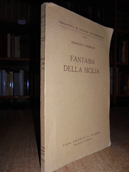 Francesco Formigari. Messina-Firenze, Casa Editrice G. D' Anna, 1952. Fantasia della Sicilia (descrizione storico-geografica dell' Isola). In-8°, cartoncino edit. 147, (4) pp. In buono stato di conservazione (Intonso). Neg. mob. 1