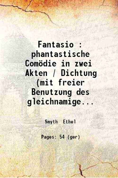 Fantasio : phantastische Comˆdie in zwei Akten / Dichtung (mit freier Benutzung des gleichnamigen Lustspiels von A. de Musset) und Musik von E.M. Smyth. 1898