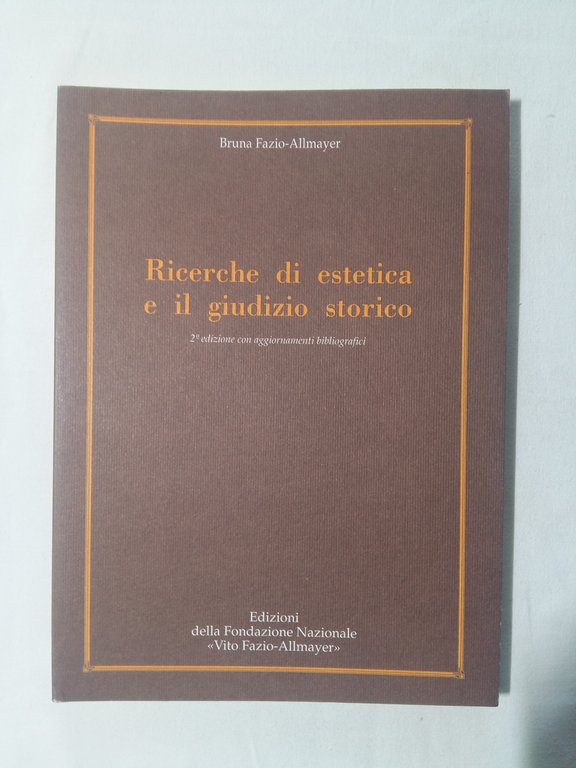 Fazio-Allmayer Bruna. Ricerche di estetica e il giudizio storico. Edizioni della Fondazione Nazionale "Vito Fazio-Allmayer". 1995 - II