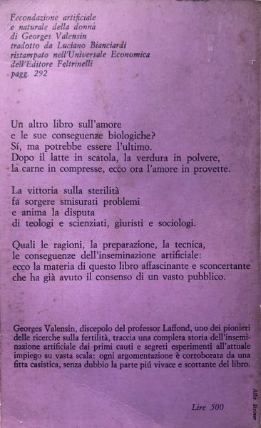 Soggetti: Medicina, Donna, Sessualità, Biologia, Provette, CDS, Donne, Sterilità, Riproduzione, Fecondazione artificiale assistita, Metodi, Gravidanza, Figli, Infertilità, Ovulazione, Ovuli, Mestruazioni, Problemi, Restare incinta, Anni Cinquanta, Anni Sessanta, Anni Settanta, Procreazione, Vitro, Femminismo, Inseminazione, The question of fertility, Vita sessuale, Coppia, Matrimonio, Liquido seminale, Spermatozoi, Aborto, Artificial insemination in woman, Francia, provetta, Bébés éprouvettes, Test Tube babies, Bé, I.A., Continenza, Tecniche, Conseguenze, Società, Mentalità, Accettazione, Donatori, Cause maschili-femminili, Temperatura, Seme, Raccolta, Sperma, Consanguineità, Adulterio, Adozione, Figli adottivi, Siringa, Leggi, Legislazione, Tape, DNA, Patrimonio genetico, Trasmissione, Somiglianza, Parto plurigemellare, Ormoni, Crescita, Fattori di Rischio, Paternità, Veterinaria, Religione, Teologia, Veleni, Fumo, Nicotina, Raggi X, Libri Vintage, Fuori catalogo, Greenberg, Ormoni, Esperimenti, Ricerca, Stati Uniti, Cina, Gran Bretagna, Progressi, Scienza, Ereditarietà, Ginecologia, Medicine, Woman, Sexuality, Biology, Test tubes, Women, Sterility, Reproduction, Assisted artificial insemination, Methods, Pregnancy, Children, Infertility, Ovulation, Ovules, Menstruation, Problems, Getting pregnant, Fifties, Sixties, Seventies, Procreation, Vitro, Feminism, Insemination, Sexual life, Couple, Marriage, Semen, Sperm, Abortion, Artificial insemination in woman, France, test tube, Continence, Techniques, Consequences, Society, Mentality, Acceptance, Donors, Male-female causes, Temperature, Seed, Harvest, Inbreeding, Adultery, Adoption, Adopted children, Syringe, Read, Legislation, Genetic heritage, Transmission, Similarity, Multi-Twin birth, Hormones, Growth, Risk factors, Paternity, Veterinary, Religion, Theology, Poisons, Smoking, Nicotine, X-ray, Out of print books, Greenberg, Hormones, Experiments, Research, United States, China, Great Britain, Progress, Science, Heredity, Gynecology