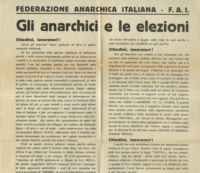 FEDERAZIONE Anarchica Italiana. F.A.I. Gli Anarchici e le elezioni [.].