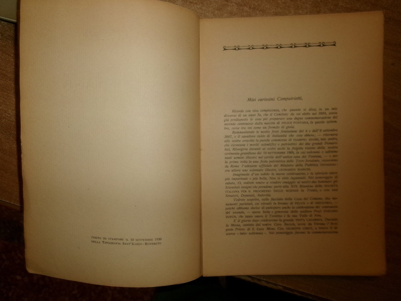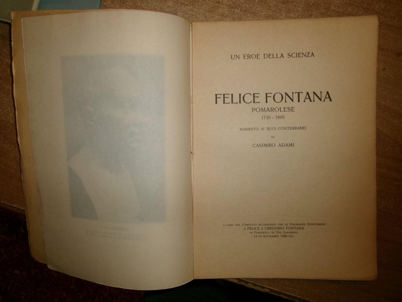 Felice Fontana pomarolese 1730-1805 narrato ai suoi contemporanei.CASIMIRO ADAMI
