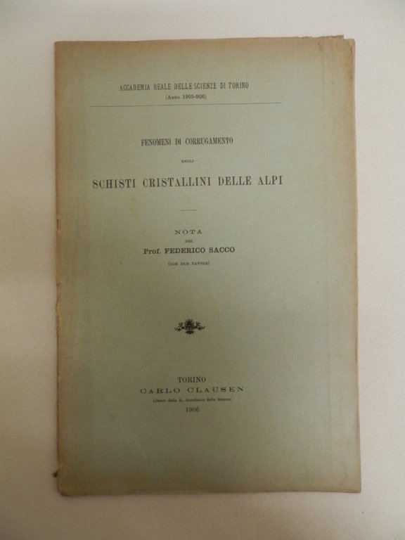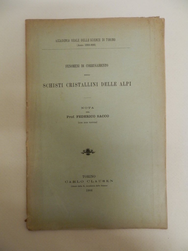 8^, pp. 12, 2 tavole più volte ripiegate fuori testo, brossura editoriale, titolo al piatto, piccola mancanza al dorso, esemplare molto buono. Descrizione di alcune conformazioni rocciose delle Alpi. *** TUTTI I NOSTRI LIBRI SONO VISIBILI PREVIO CONTATTO MAIL O TELEFONO NELLA NUOVA SEDE DI MILANO: LIBRERIA COSMOPOLIS, VIA JOMMELLI, 22. ***
