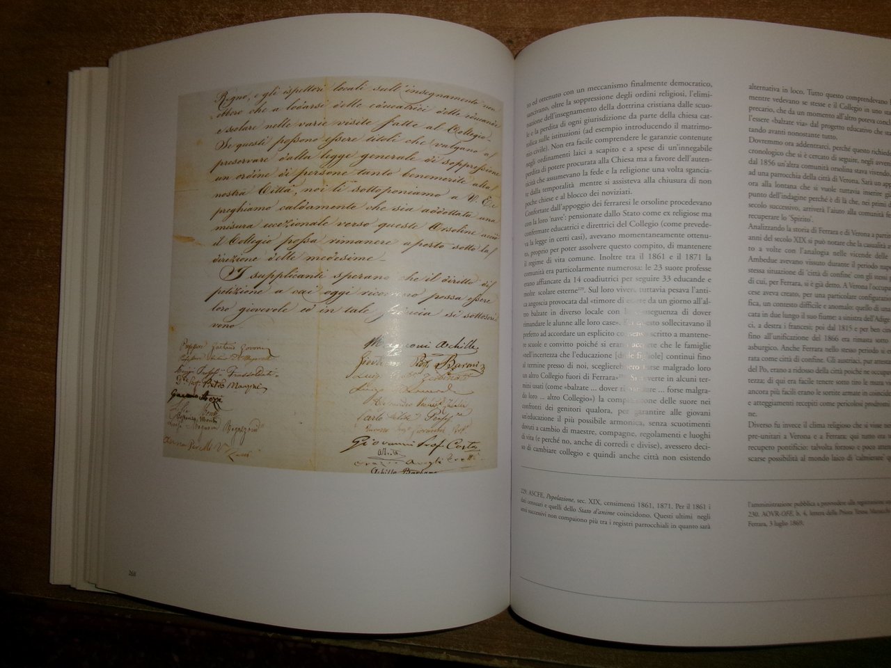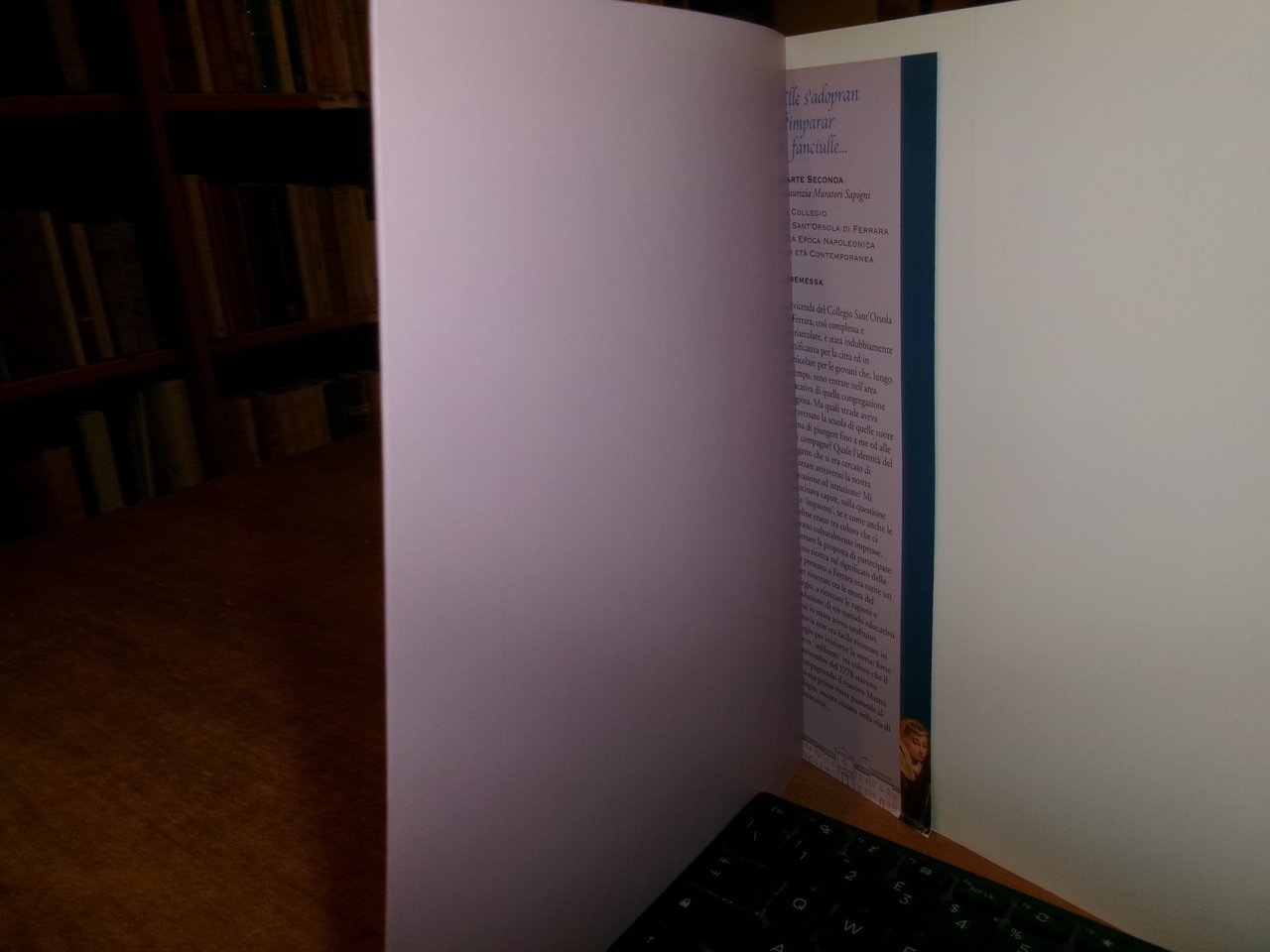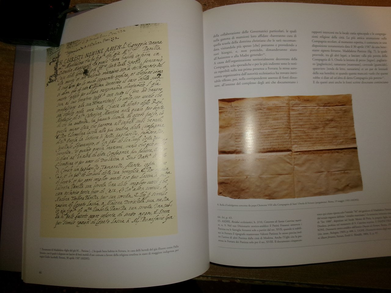 Elle s’adopran d’imparar fanciulle - la compagnia e il collegio di Sant’Orsola di Ferrara (secoli XVI - XX). Fondazione Carife Ferrara, 2004. In-4° piccolo, cart. edit. ill. a col. con gradi risvolti. Brossura cucita, formato cm. 24 x 35, pp.362 semipatinate, numerose riproduzioni di antichi documenti e altre immagini in nero e a colori. Come nuovo. 2 copie 20 euro cad. Uff. C - IV - 3 - 2