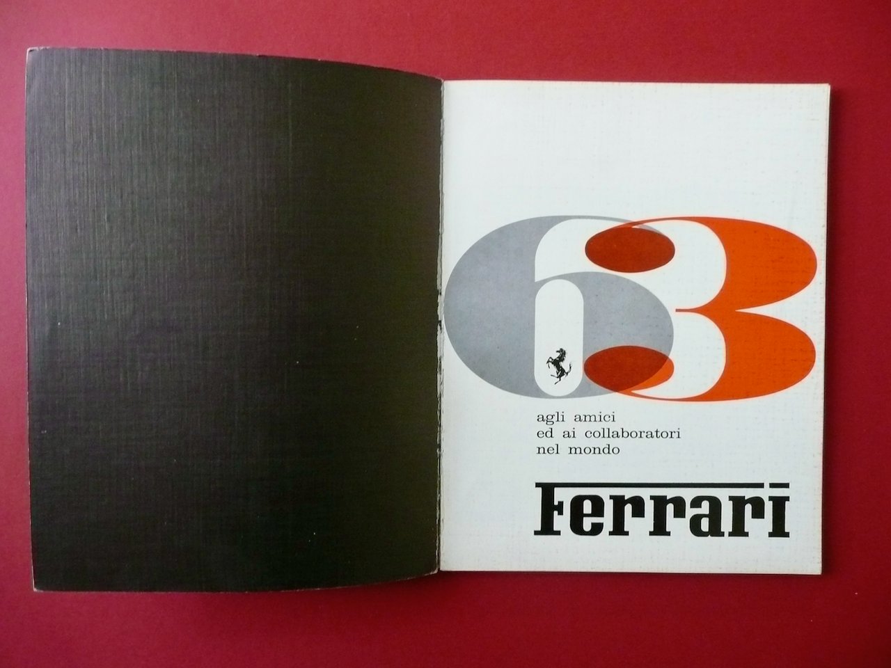 Annuario, Ferrari Annuario 1963 Officine Grafiche Calderini - Ferrari, 1963; cm 27x21; pp. non num. (pp. 108), con numerose ill. in b/n nel t. e fuori t. (qualcuna a colori); brossura ed. ill. a colori. Condizioni di conservazione Esemplare ben conservato con tracce d'uso, brossura con alcune lievi tracce di sporco, margini e angoli delle brossure con pochi minuscoli difetti; poche piccolissime abrasioni. Interni molto ben conservati. SETT175.L15766 N