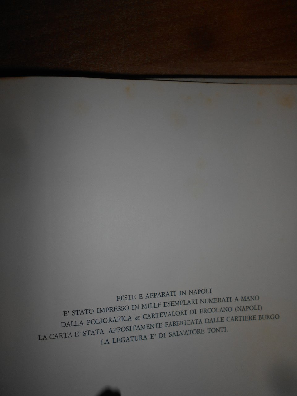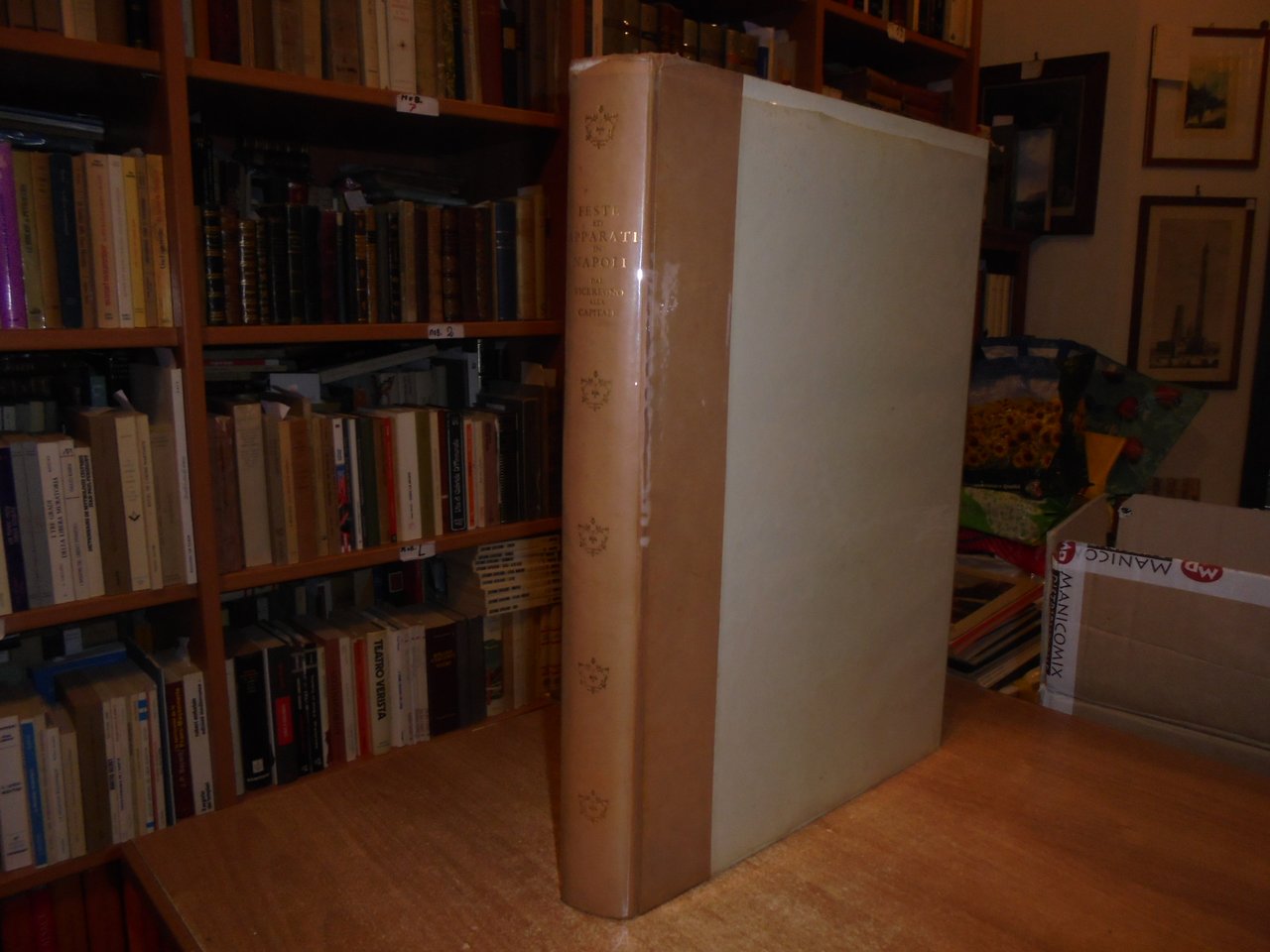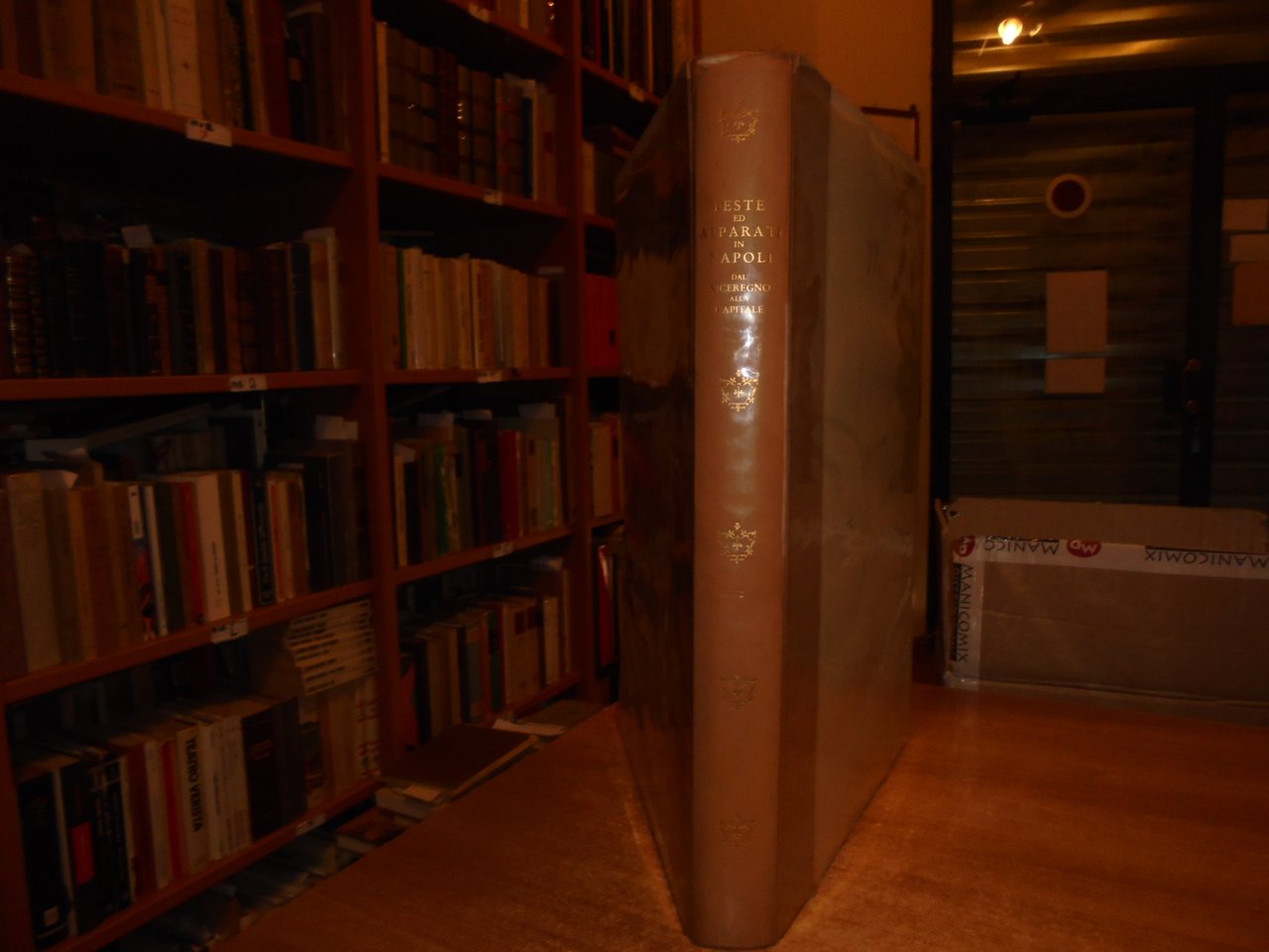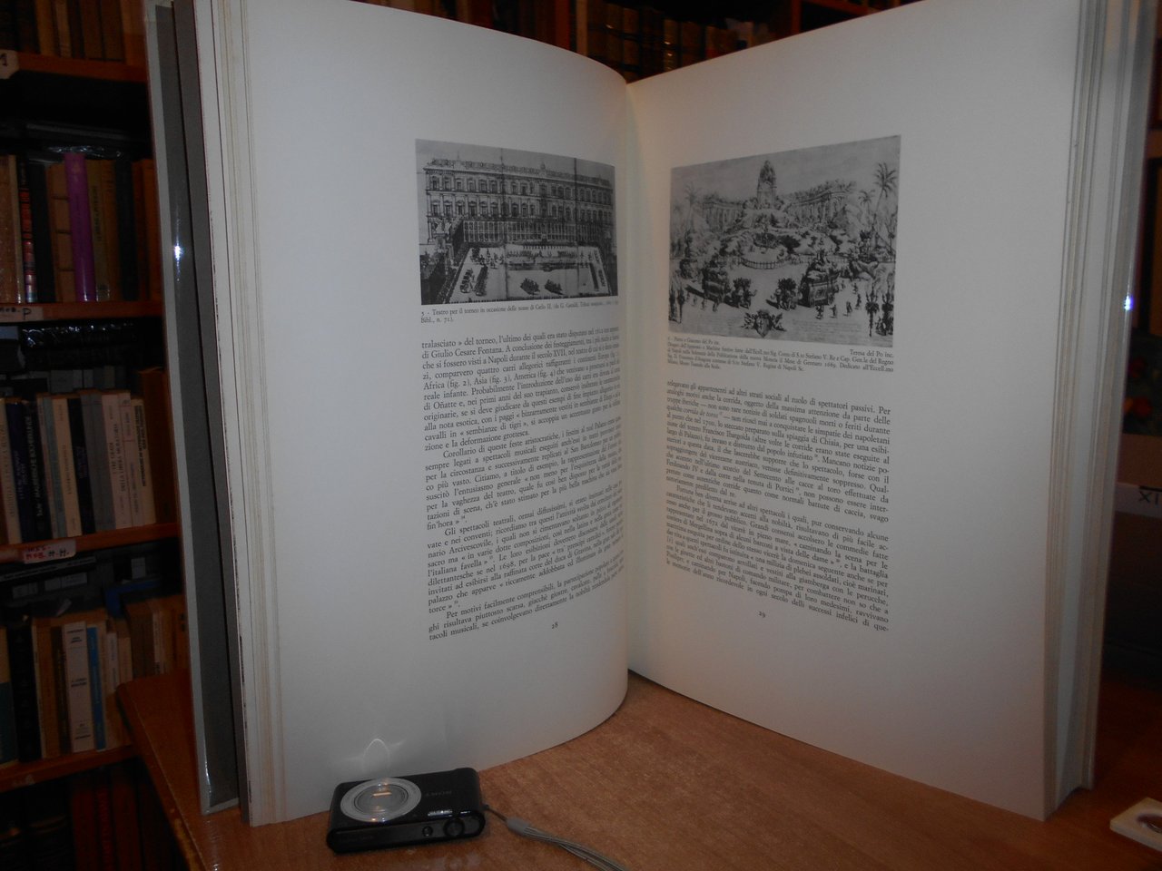 FRANCO MANCINI. In Napoli, per le Edizioni Scientifiche Italiane, MCMLXVIII. In-folio (51 x 37 cm.), m. pelle con fregi e titolo in oro al dorso, sovracopertina in acetato. 312, (4) con ill. a col. applicate su tavv. f.t., 6 tavole b/n f.t. ripieg. con riprod. di antiche stampe, 152 figg. n.t. ed in fine 32 tavv. n.t. con riprod. di disegni. Indice dei nomi e dei luoghi, bibliografia. Ediz. di 1000 esemplari num. (ns. 221). Peso circa 8 KG. Ottimo esemplare. Uff. stanza antic. a destra in basso