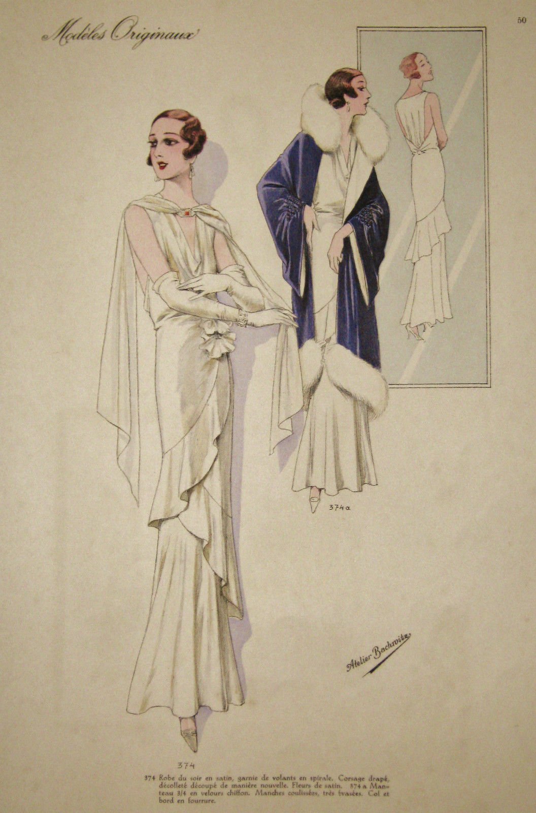Figurino Atelier Bachroitz Paris originale 1931