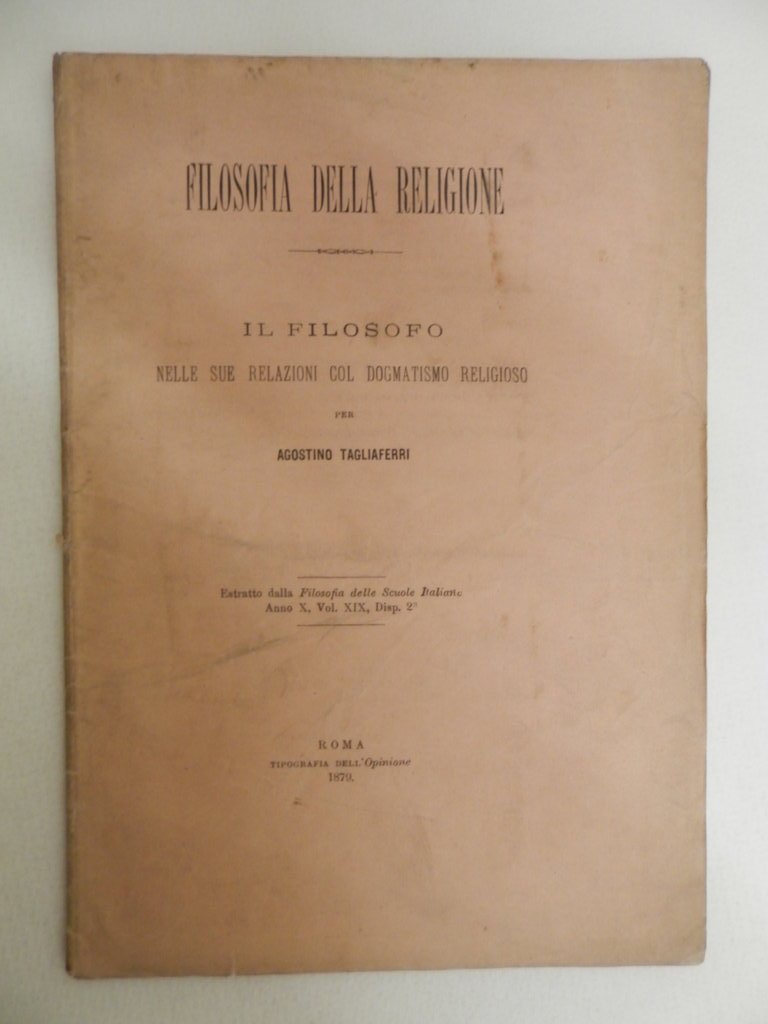 Filosofia della religione. Il filosofo nelle sue relazioni col dogmatismo religioso
