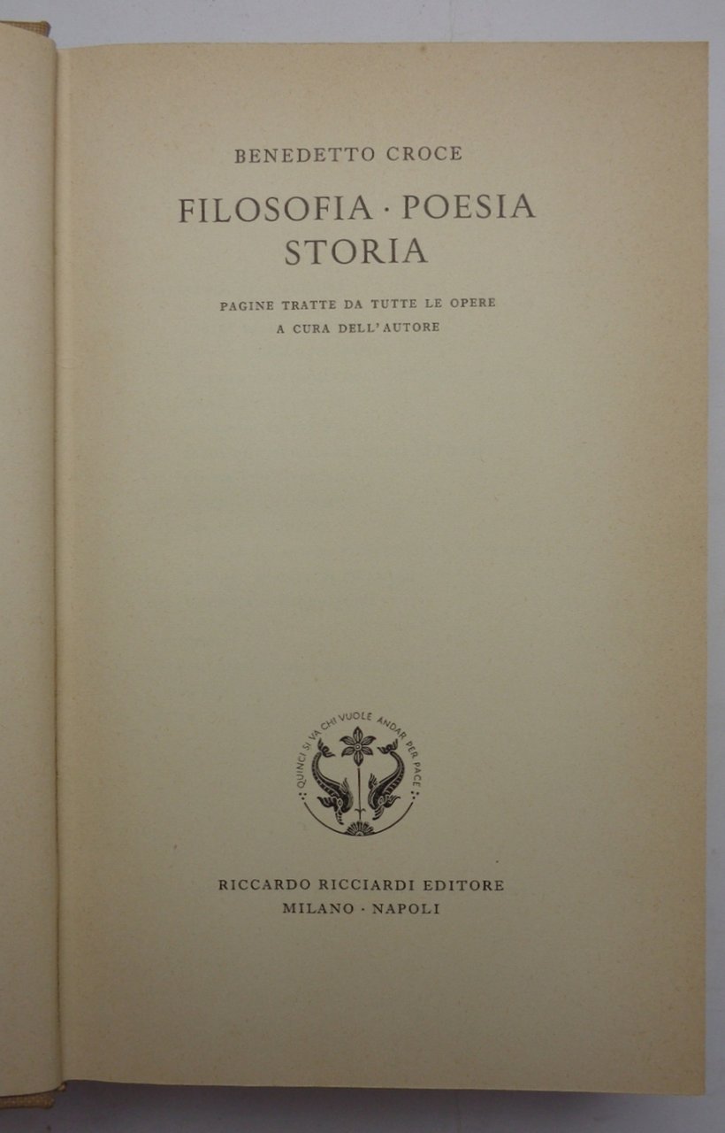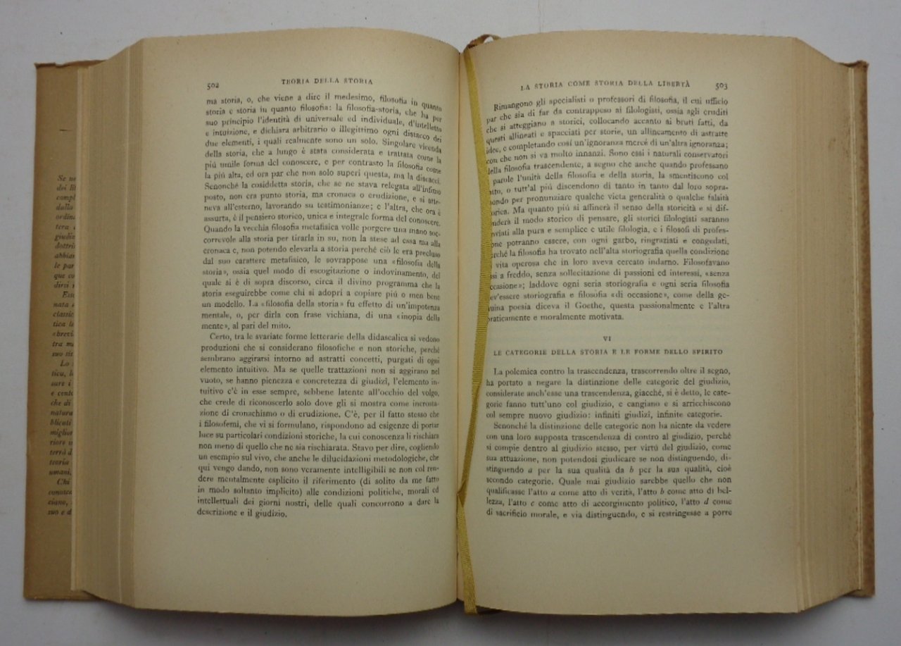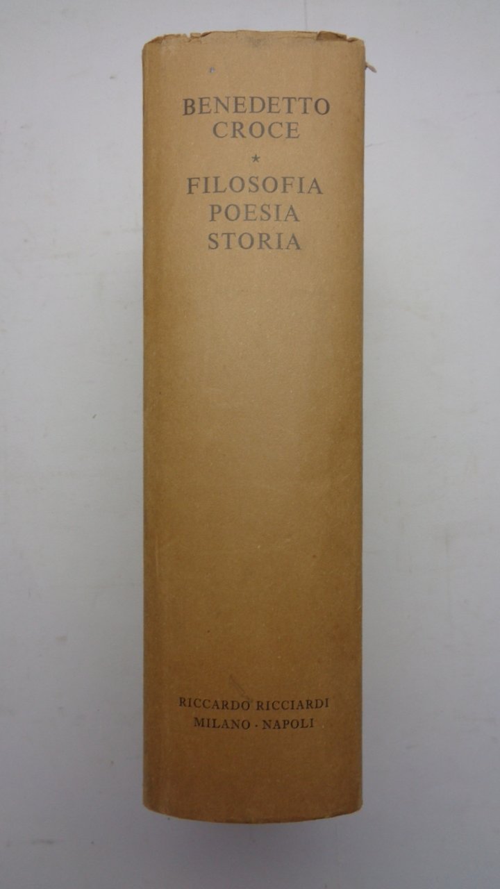 Un volume (23 cm) di 1245 pagine. Tela editoriale con sovracoperta, nella collezione La letteratura italiana Storia e Testi, vol 75. Tracce d'uso alla sovracoperta (piccole mancanze, strappetti sui margini), lieve brunitura dei margini delle pagine ma nel complesso buonissime condizioni. Stampato nella tipografia Valdonega, è la summa dell'opera crociana, curata dallo stesso Croce su invito di Raffaele Mattioli, poco prima della scomparsa.