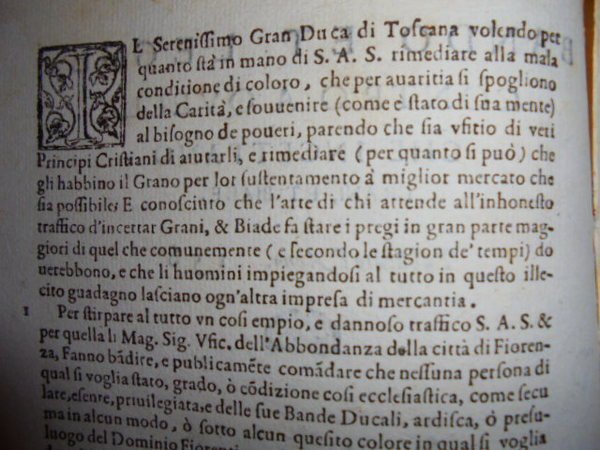 (Firenze) Bandi. BANDO et LEGGE contro a quelli che incettano grani, et biade. Publicata l' anno 158(0)