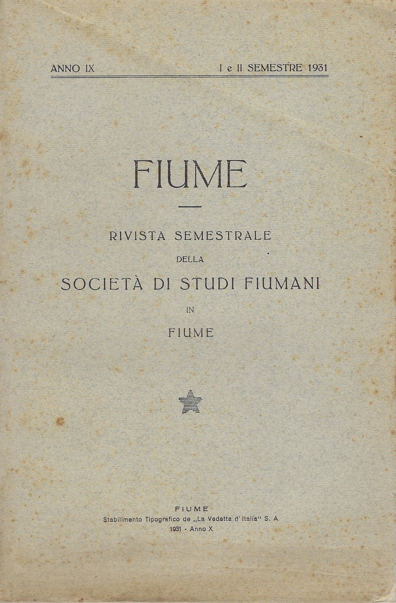 Fiume Rivista semestrale della -Società di Studi Fiumani-in Fiume (Anno IX. I e II semestre 1931)