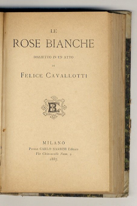 Flirtation. Comédie en un acte. Traduction de Raphael Jourdan. [Legato con:] Cavallotti Felice. Le rose bianche. Bozzetto in un atto. [Teatro [.] vol. VII]. [Legato con:] Bonaventura Arnaldo. Fantasie musicali. Rus. [Legato con:] Montemagni Alberto. Miraggi. Piccolo canzoniere. (1878-84).