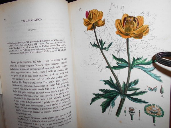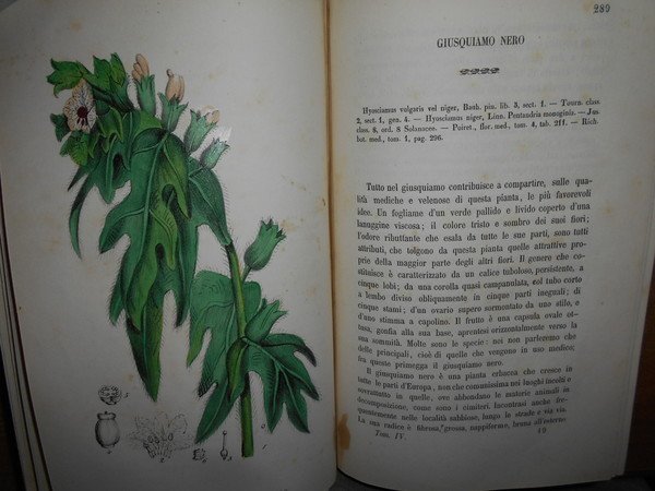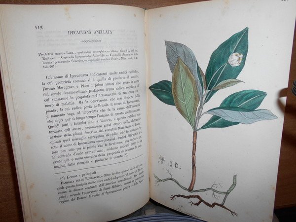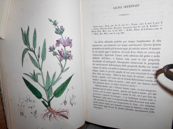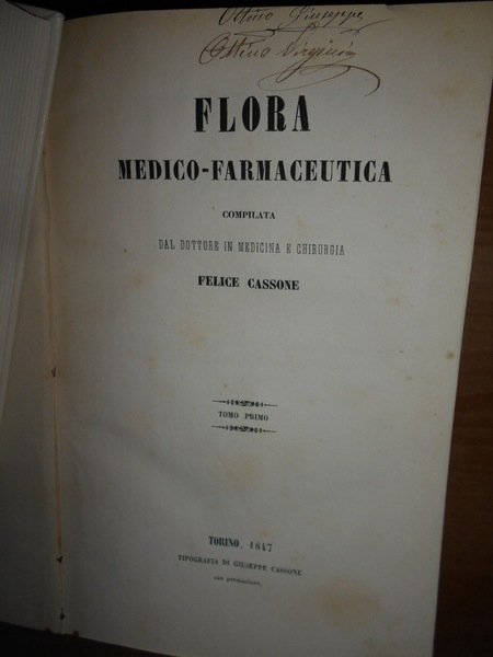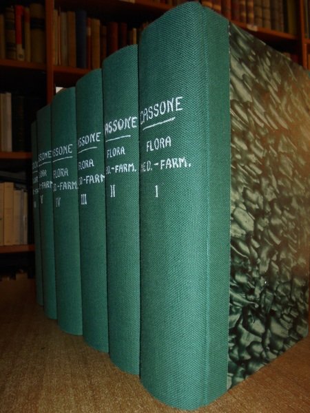 Felice, Cassone. Torino, Tipografia di Giuseppe Cassone, 1847 - 1848 - 1852. FLORA MEDICO-FARMACEUTICA. Edizione originale. 6 volumi in-8°, m.tela con angoli (legature recenti), titoli ai dorsi. XXXV,364; 391; 392; 383; 414; 394; con uno straordinario apparato iconografico di ben 600 tavole f.t.: sono bellissime litografie colorate d’epoca che illustrano la flora medico-farmaceutica, suddivisa per famiglie. L’opera è Introdotta da: cenni storici sulla botanica in genere e sulla materia medica vegetale - azione dei medicamenti in genere - dei mezzi per isvelare l’azione dei medicamenti - dose dei medicamenti e modi di somministrarli. “Il piemontese Felice Cassone (1815-1854), illustre botanico e medico, è l’autore di questa importante opera sulle piante medicinali, ciascuna ampiamente descritta in tutte le sue parti, le sue proprietà, le sue applicazioni in medicina, le sue varie denominazioni nelle diverse lingue. Nel volume sesto a pag. 5 e 12 perdita di alcune parole come da foto (ultime due). Lievi arrossature in poche pagine ma nel complesso ottimo esemplare (completo). Uff. TV. mob. nostro