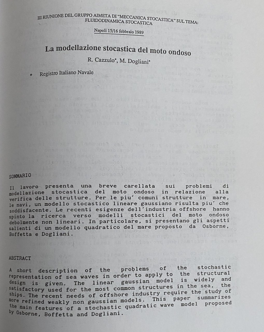 Titolo: Fluidodinamica stocastica. Atti. Napoli, 15/16 febbraio 1989