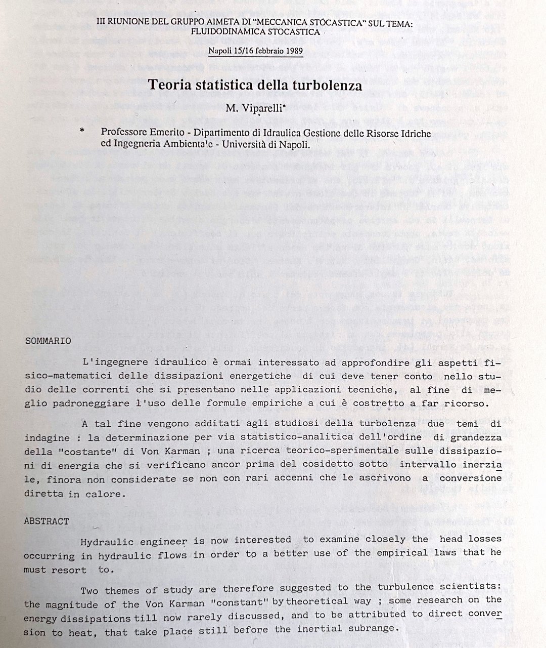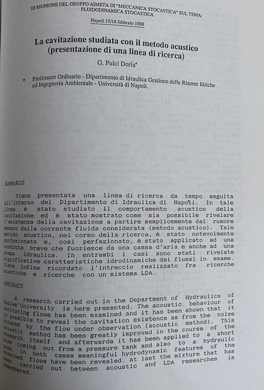- Seminari, Convegni, Atti, Consultazione, Riferimento, Bibliografia, Studi scientifici, Papers, Collezionismo, Saggi, Libri rari, Libri fuori catalogo, Manuali, Fluidodinamica, Fisica, Ingegneria idraulica, Ingegneria civile, Ingegneria, Idraulica, Meccanica, Stocastica, Fluidi, Macchine idrauliche, Turbolenze, Energia