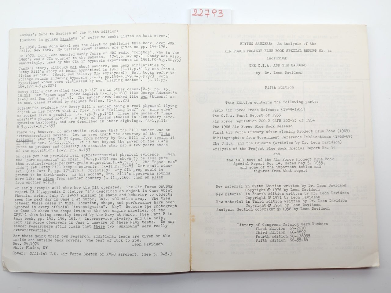 Flying souchers analysis of the Air Force Project Blue book by Leon Davidson 1976