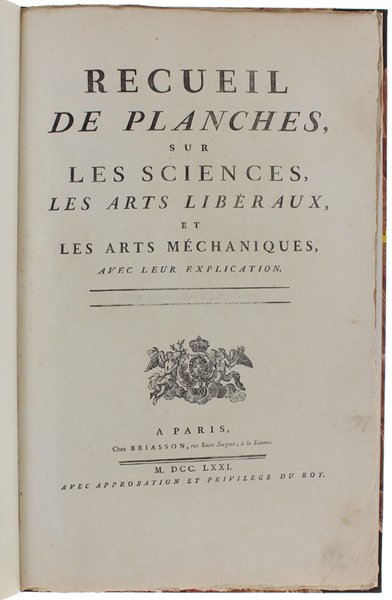 (Codice AN/3414) Vente-cinq planches originales in folio (43x27 cm). Edition 1771, illustrée de nombreuses gravures par Bernard; avec 17 pages d'explication, texte sur deux colonnes. Sur papier pur chiffon à la cuve, grandes marges non rognés. Très bon état. Gardé la page de titre du volume. Réliure moderne, demi toile, titre dorè. Très bon état. Magnifique ensemble de gravures superbes. ~~~ SPEDIZIONE IN ITALIA SEMPRE TRACCIATA