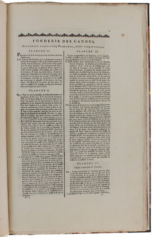 FONDERIE DE CANONS. Contenant VENTE-CINQ planches, dont cinqe doublés. "Recueil de planches sur les sciences, les arts libéraux, et les arts mechaniques, avec leur explications".