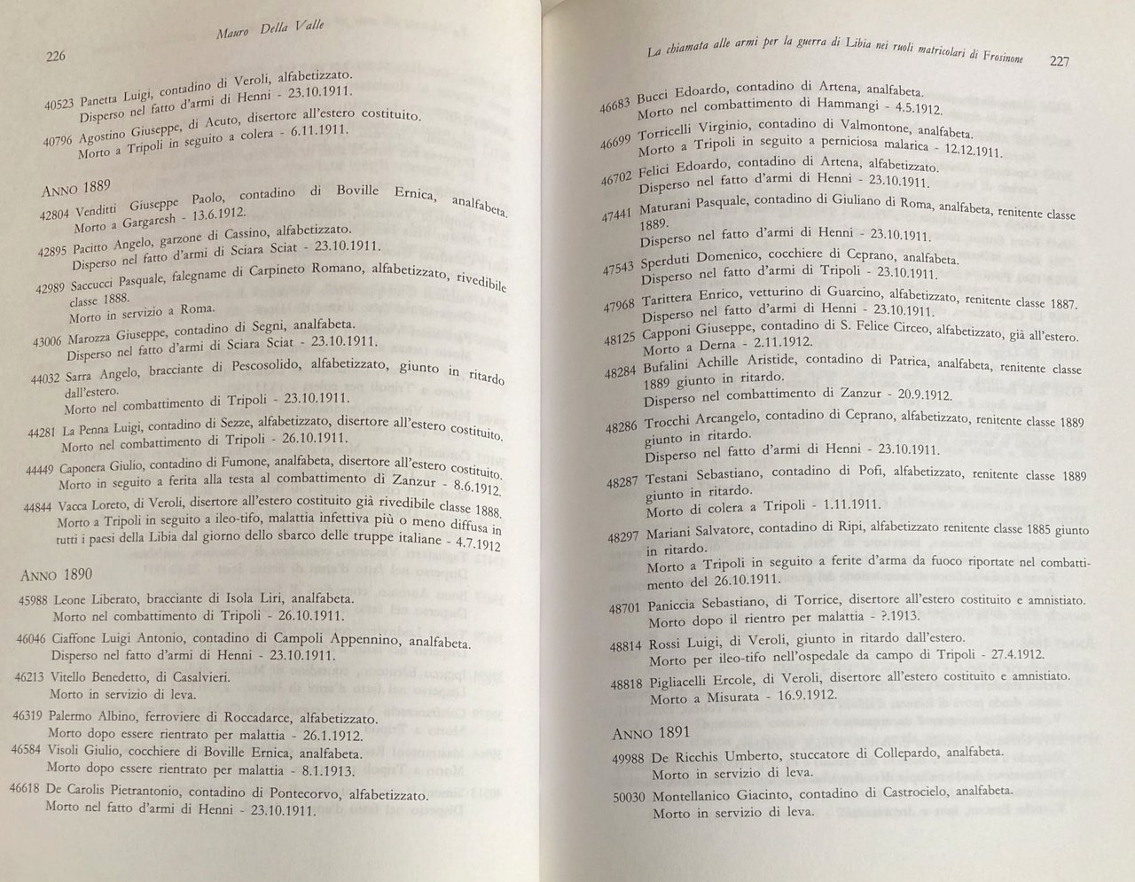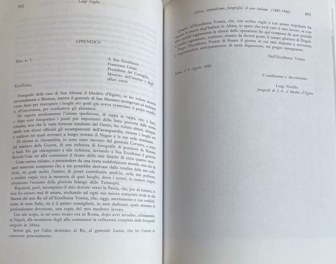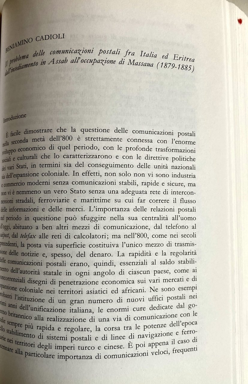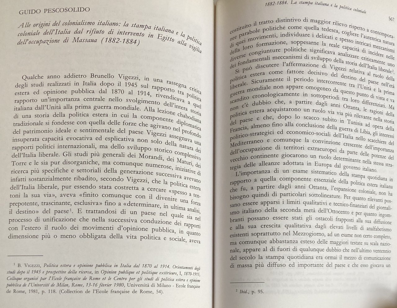 Soggetti: Storia contemporanea Ideologia Colonialismo Imperialismo Novecento Guerre Occupazione Studi Politica coloniale italiana Decolonizzazione Archivio centrale Stato Storiografia Africa Ufficio Propaganda MΑΙ The Archives Consolata Mission Colonialism Consolato Diplomazia Ambasciata Funzionari Cesare Nerazzini Militaria Medici Servizio Colosimo Ottocento Libia Eritrea Etiopia Abissinia Conquiste territoriali Amministrazione Burocrazia Fascismo Germania Gran Bretagna Francia Convegni Dopoguerra Fonti britanniche Historiographie française Politique italienne Chiamata alle armi Guerra Frosinone Deportati libici Carte Documenti Atti Tremiti Rivolta Sciara Sciat Generale Oreste Baratieri Lotta Libertà Trento Ministero Sahati Dogali Questura Memoria storica Testimonianze Colonie Luigi Pintor Istituzioni Chiesa Istituto italiano Società geografiche Ente Colonizzazione Puglia Internazionale New Imperialism Fulvio Suviche Stampa Editoria Giornali Intervento Egitto Massana Tunisia Letteratura Scuola Istruzione Archeologia Missioni archeologiche religiose Inglese Americana Mondiale Emperor Haile Sellassie Resistenza Resistance Patrioti etiopi Patriots Minorité Tunisie Fotografia Civiltà cattolica Liberale Giacomo Agnesa Economia Ebraici Ebrei Tripolitana Comunicazioni postali Assab Salento Agricoltura Demografia Pesca Ostricoltura Ricerca idrobiologica Laboratorio Biologia marina Taranto Emigrazione Ferrovia Goletta Crisi italo-francese Dottrina Strategia Tattica Logistica Campagne Esplorazioni Penetrazione Costituzione Polizia Aeronautica Somalia Cartografia Prigionieri Ustica Truppe Mire espansionistiche SME Lavoro Cavalleria Liberalismo Giolitti Impresa libica Anticolonialismo Cultura Sentimento Egeo Grecia Dodecaneso Ideologie politiche Riferimento Consultazione Libri rari fuori catalogo Collezionismo Storici Moderna Maghreb Mediterraneo Regno Sudditi Ras Addis Abeba Aden Adua Affari esteri Orientale ASDMAE ASMAI Asmara Bengasi Brindisi Cirenaica Commissario Fascista Fotografie Fototeca Gojjam Graziani Kenya Massaua Missionari Mussolini Naretti Operazioni Piroscafo Popolazioni Relazione Roosevelt Rubattino Scuole Territori Tripoli Neri Vian bera Riva africana Alessandro Pes Angelo Del Boca Horn Arabi Almanacco Pubblicazioni Giulietti Bianchi Massacri Eccidio Bibliografia Contemporary history Ideology Colonialism Twentieth century Wars Occupation Studies Italian colonial policy Decolonization Central archive State Historiography Office Consulate Diplomacy Embassy Officials Service Nineteenth Libya Ethiopia Abyssinia Territorial conquests Administration Bureaucracy Fascism Germany Great Britain France Conferences Postwar British sources Call to arms War Libyan deportees Papers Documents Acts General Revolt Freedom Struggle Ministry Police Headquarters Historical memory Testimonies Colonies Institutions Church Institutes Geographical societies International Colonization Agency Press Publishing Newspapers Intervention Egypt Literature School Education Archaeology Religious archaeological missions English American World Ethiopians Photography Catholic civilization Economy Jews Postal communications Agriculture Demography Fishing Oyster farming Hydrobiological research Laboratory Marine biology Emigration Railway Italian-French crisis Doctrine Strategy Tactics Logistics Campaigns Explorations Penetration Constitution Air Force Cartography Prisoners Troops Expansionist aims Work Cavalry Liberalism Enterprise Anticolonialism Culture Sentiment Aegean Greece Dodecanese Political ideologies Reference Consultation Rare books out of print Collectibles Historians Modern Mediterranean Kingdom Subjects Foreign affairs Eastern Cyrenaica Fascist Commissioner Photographs Photo library Missionaries Operations Steamship Populations Report Schools Territories African shore Arabs Almanac Publications Massacres Massacre Bibliography
