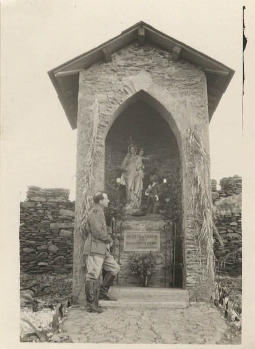 [Fotografia di un soldato in visita alla Madonna dedicata alla città di Genova dalla 2° Divisione CC.NN. "28 ottobre"].