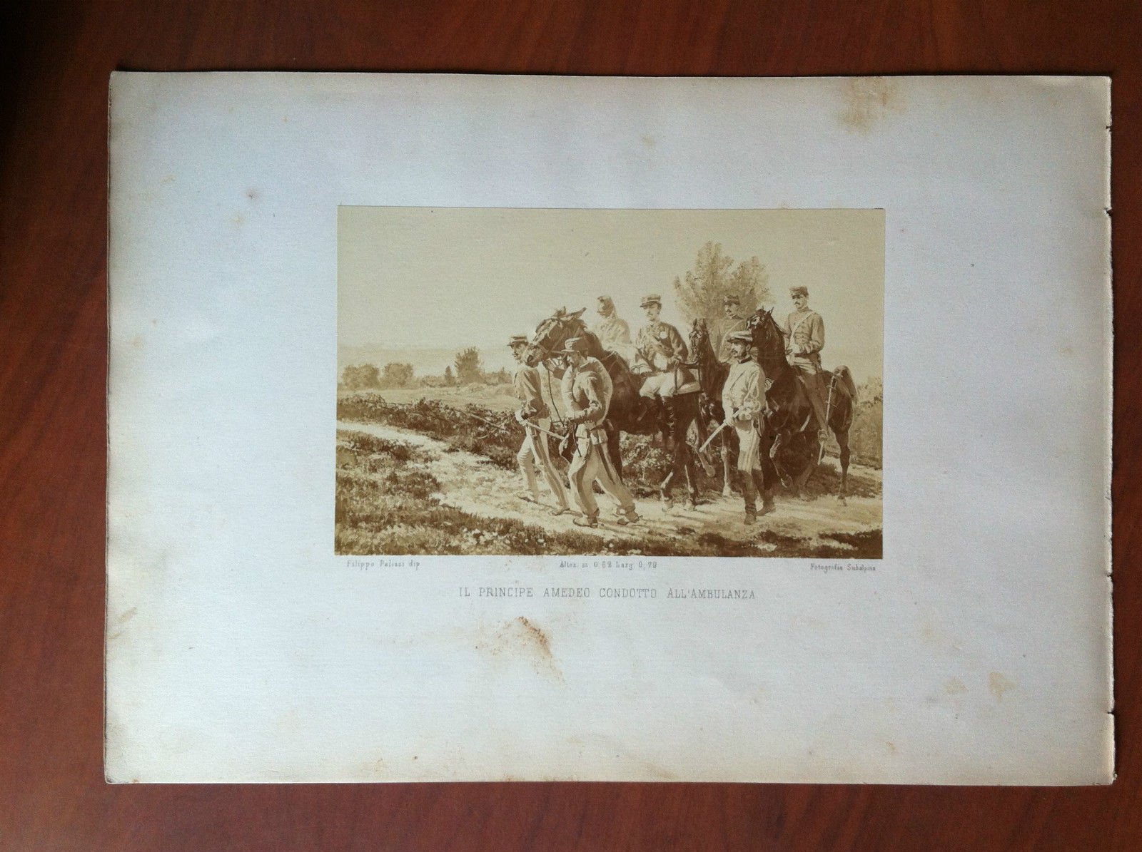 Fotografia originale 1870 PRINCIPE AMEDEO CONDOTTO ALL'AMBULANZADa un dipinto di Filippo Palizzi - Fotografia Subalpinaformato foglio 33x23,5 cm. - formato fotografia 18x11,5 cmin ottimo stato (20 g)E10445