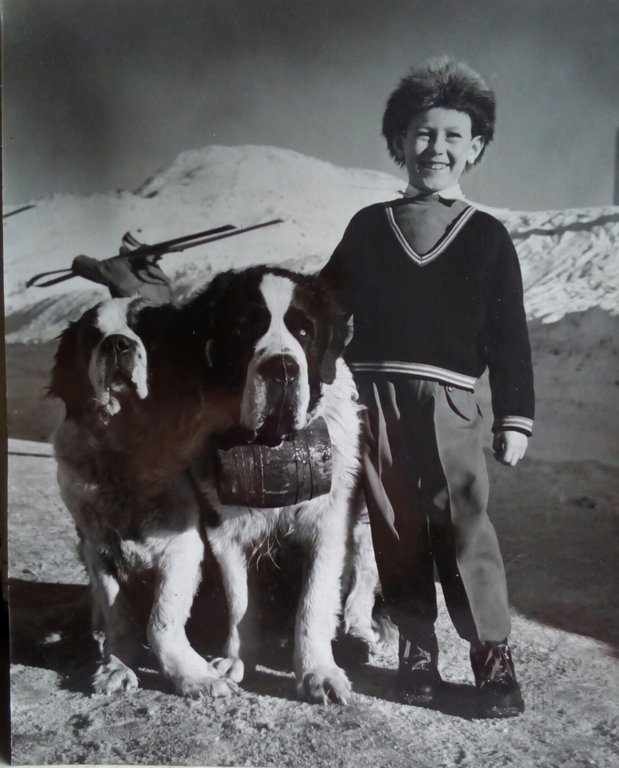 Fotografia originale Sestriere ritratto con cani s.Bernardo fine anni '50