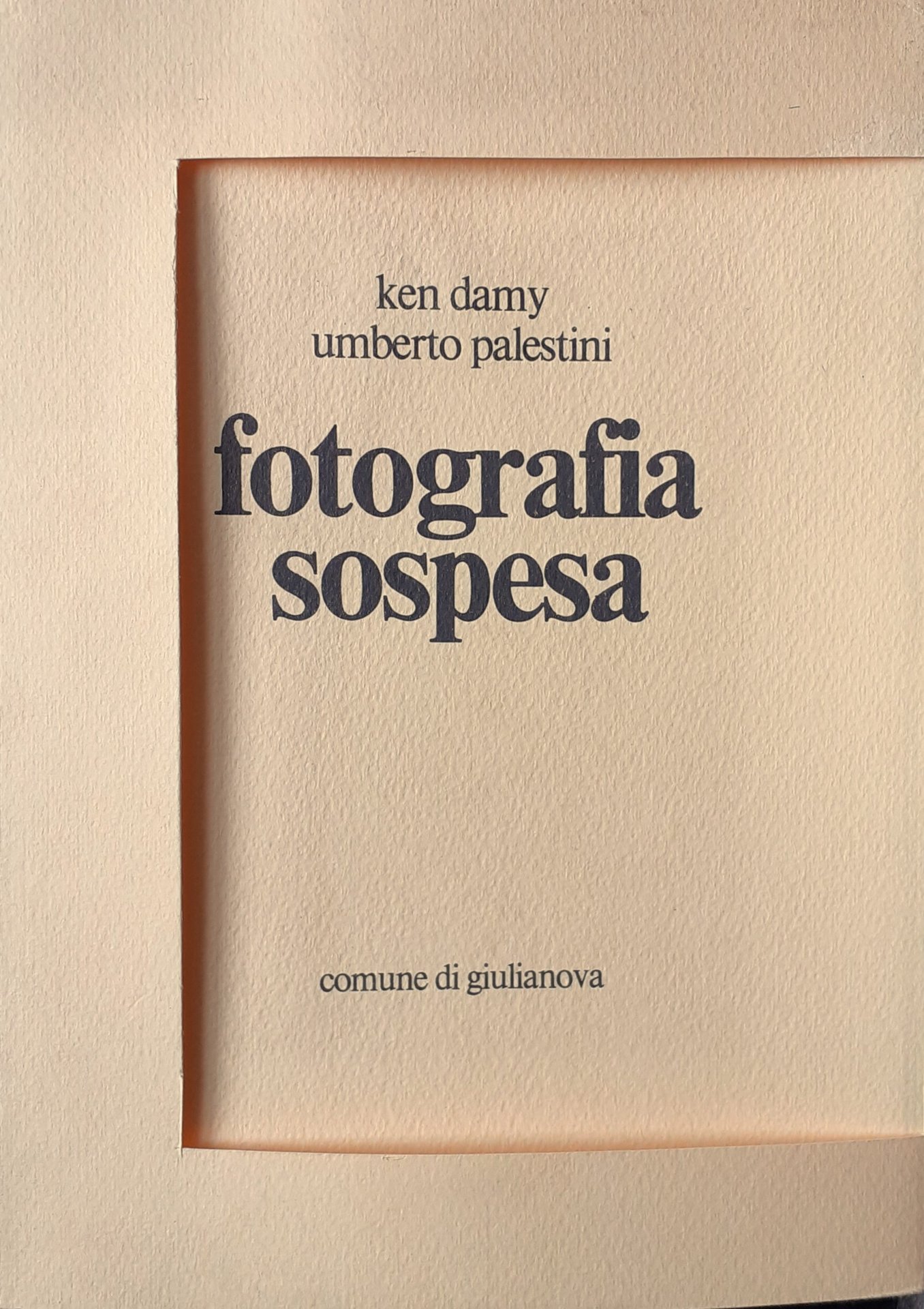 I ed. Catalogo della mostra "Fotografia sospesa" tenutasi presso "Art agency Marraccini", via Sabotino, 7 a Giulianova (Teramo) (10-8 - 30-9-1984). Saggio introduttivo di Angelo Swarz. In-8, pp. 96. Senza immagini. Stato buono