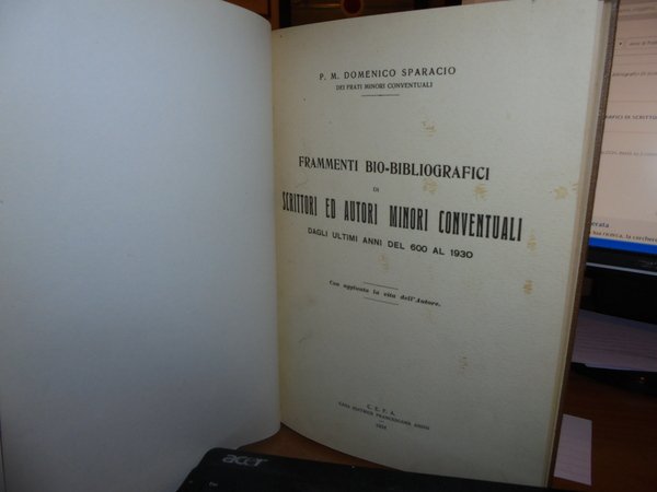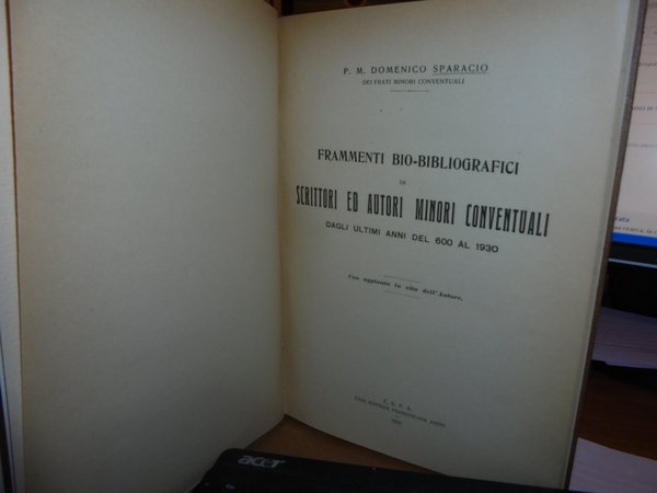 FRAMMENTI BIO-BIBLIOGRAFICI di SCRITTORI ed AUTORI MINORI CONVENTUALI dagli ultimi anni del 600 al 1930