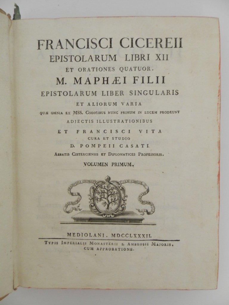 Francisci Cicereii epistolarum libri XII et orationes quatuor. M. Maphaei filii epistolarum liber singularis et aliorum varia quae omnia ex mss. codicibus nunc primum in lucem prodeunt adjectis illustrationibus et Francisci vita cura et studio D. Pompeii Casati