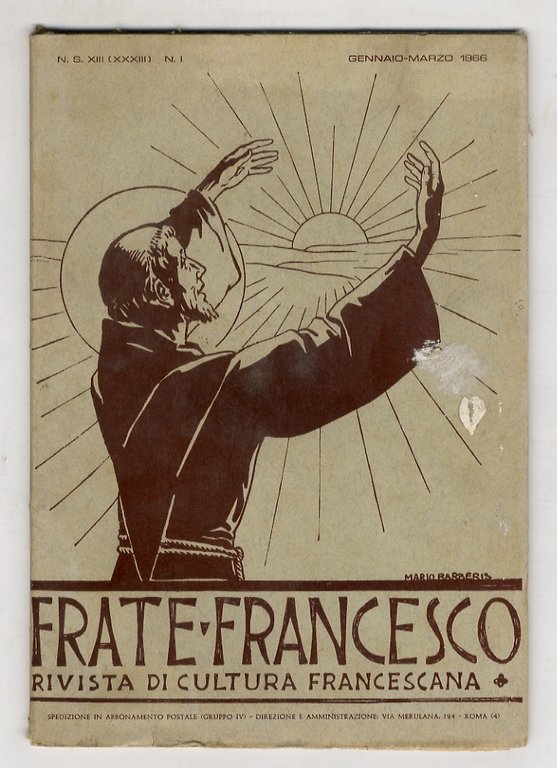 FRATE Francesco. Rivista trimestrale di cultura francescana. Direttore: P. Liberato Di Stolfi. Redattore: Fausta Casolini. N[uova] S[erie] XIII ([anno] XXXIII). 1966. Gennaio-marzo [- ottobre-dicembre]. Annata completa.