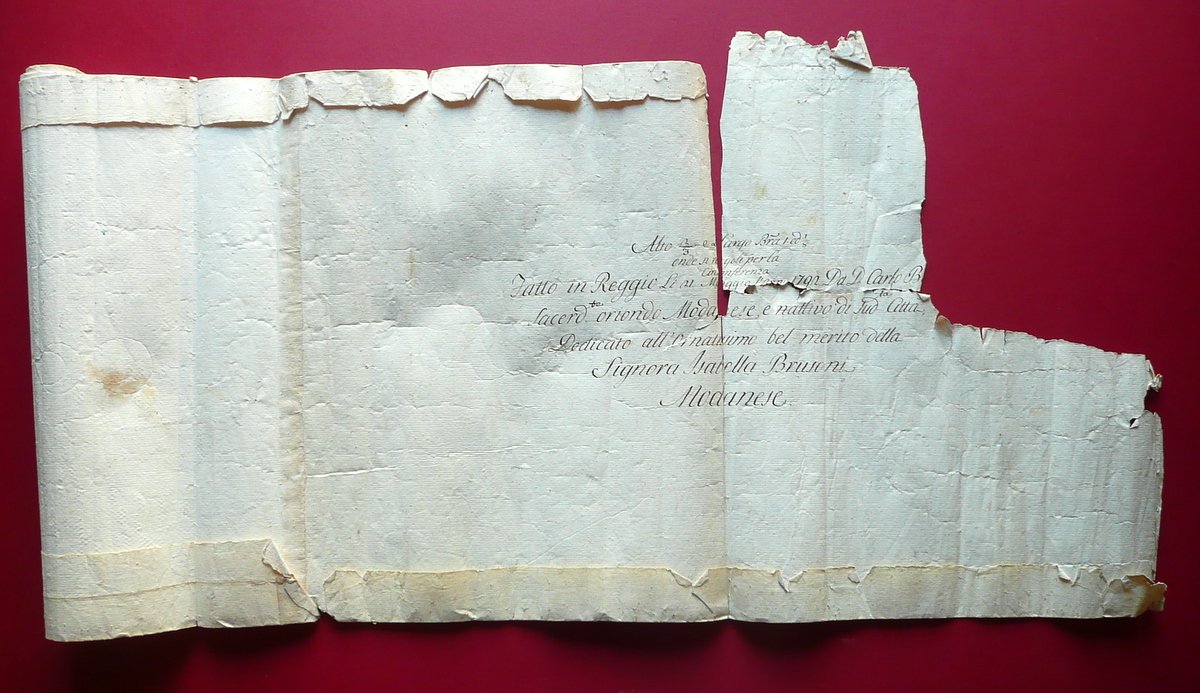 Fregio Dipinto a Mano in Rotolo Reggio 1792 Carta Forte
