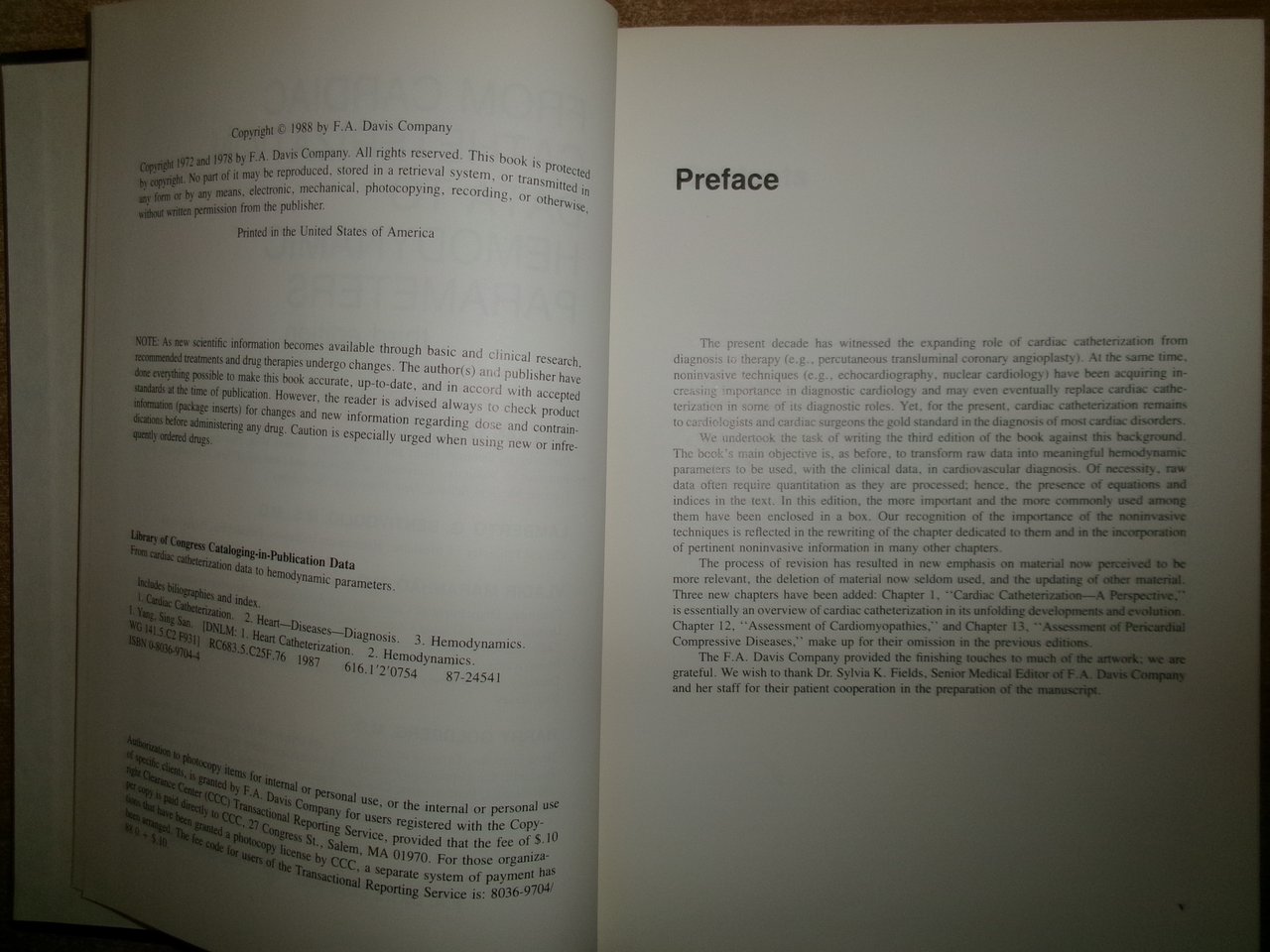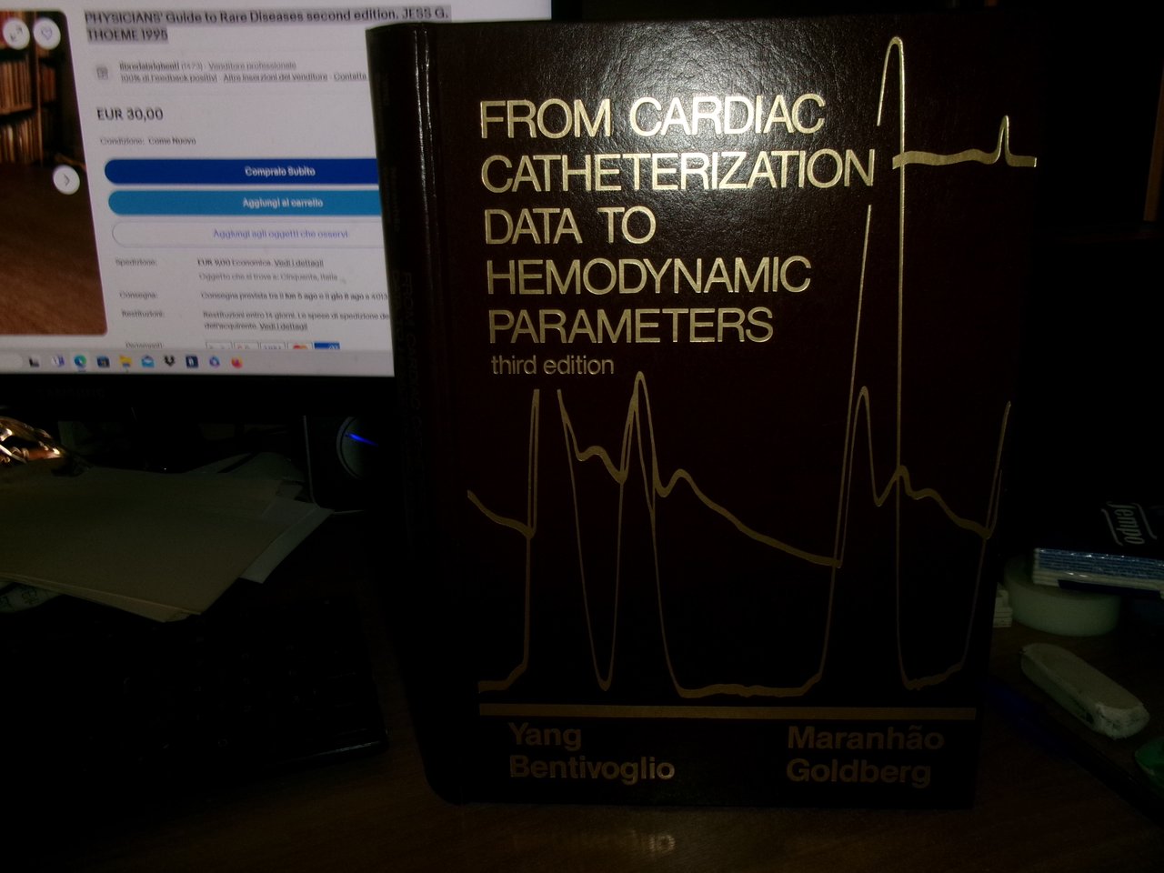 YANG BENTIVOGLIO - MARANHAO GOLDBERG. Philadelphia, Davis Company, 1988. FROM CARDIAC CATHERIZATION DATA TO HEMODYNAMIC PARAMETERS. In-8°, similpelle e oro. v, 430 pp- con alcune illustrazioni n.t. Ottimo esemplare con una dedica a penna nella prima bianca con testo in inglese. Uff. stanz. sinistra II - 2
