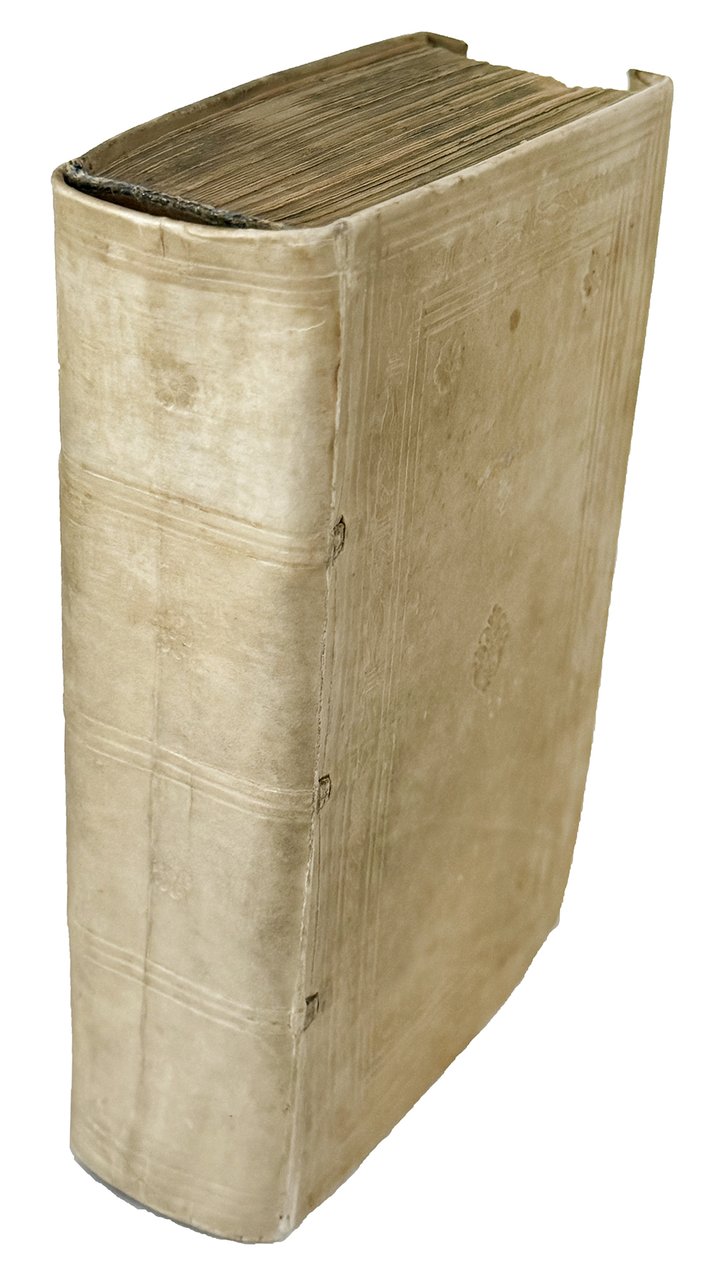 8vo (165x95 mm). [399] leaves. Collation: A-Ddd8. Lacking the final blank leaf. Title printed in red and black with a vignette in center partly colored in red and 16 small woodcuts in the text (two repeated, one full page). Later blind-ruled stiff vellum with overlapping edges, blue edges (faded). Lightly uniformly browned, some occasional staining, small repaired hole to ll. R8 and R8 slightly affecting the text, otherwise a very good, genuine copy.