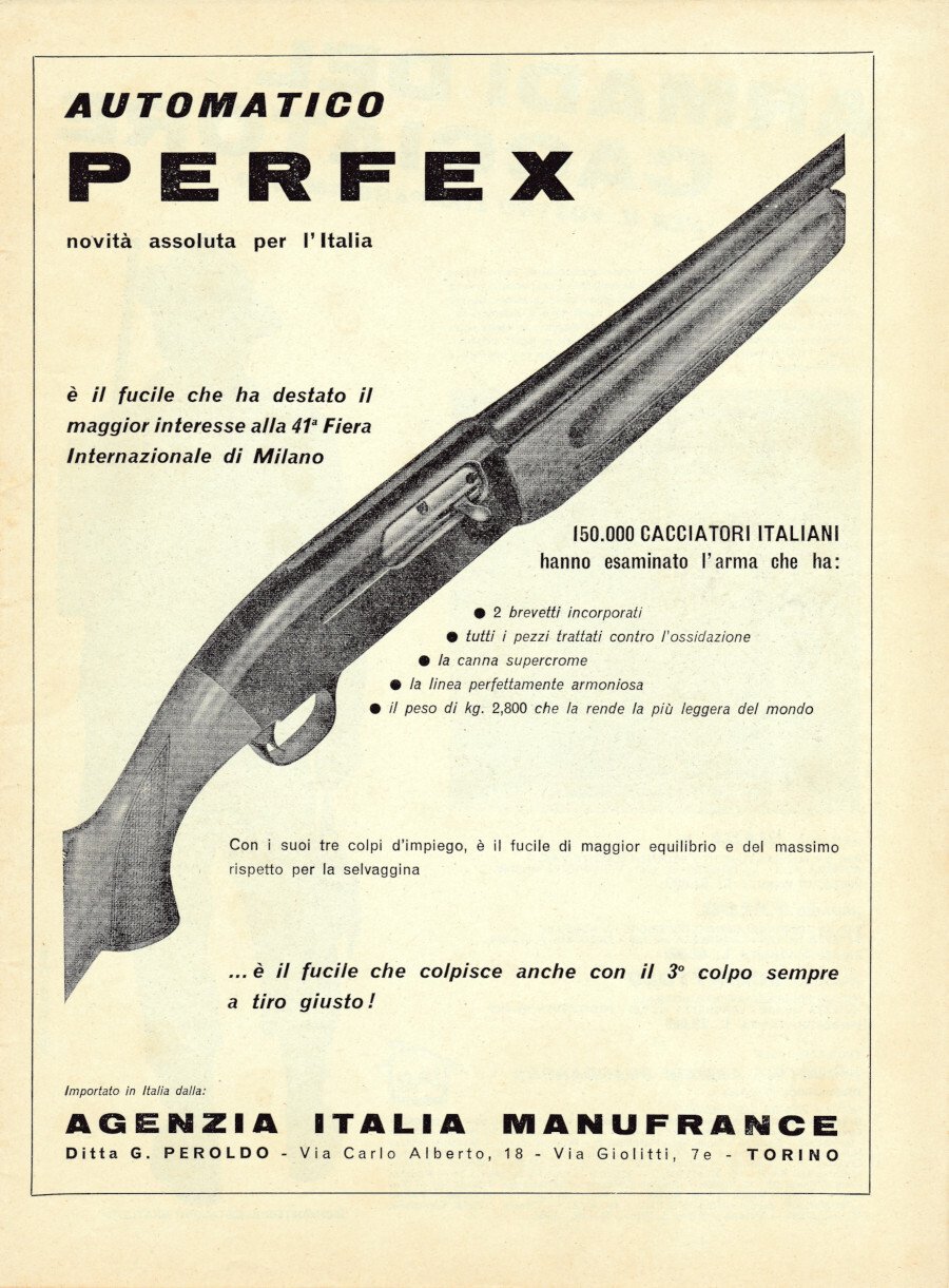 Fucile automatico Perfex. Agenzia Italiana Manufrance. Advertising 1963