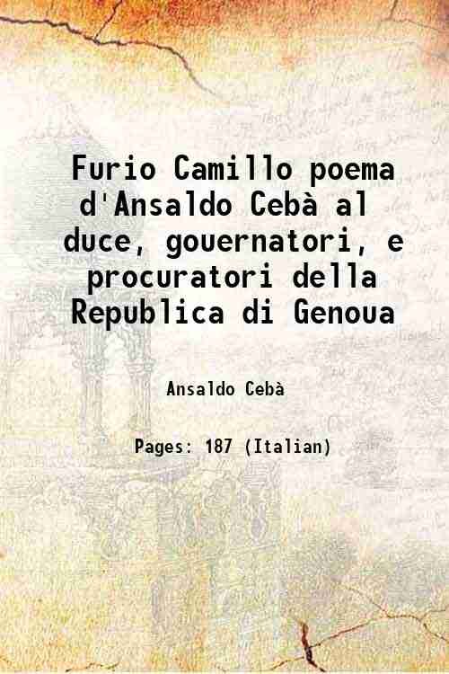 Furio Camillo poema d'Ansaldo Ceb‡ al duce, gouernatori, e procuratori della Republica di Genoua 1623