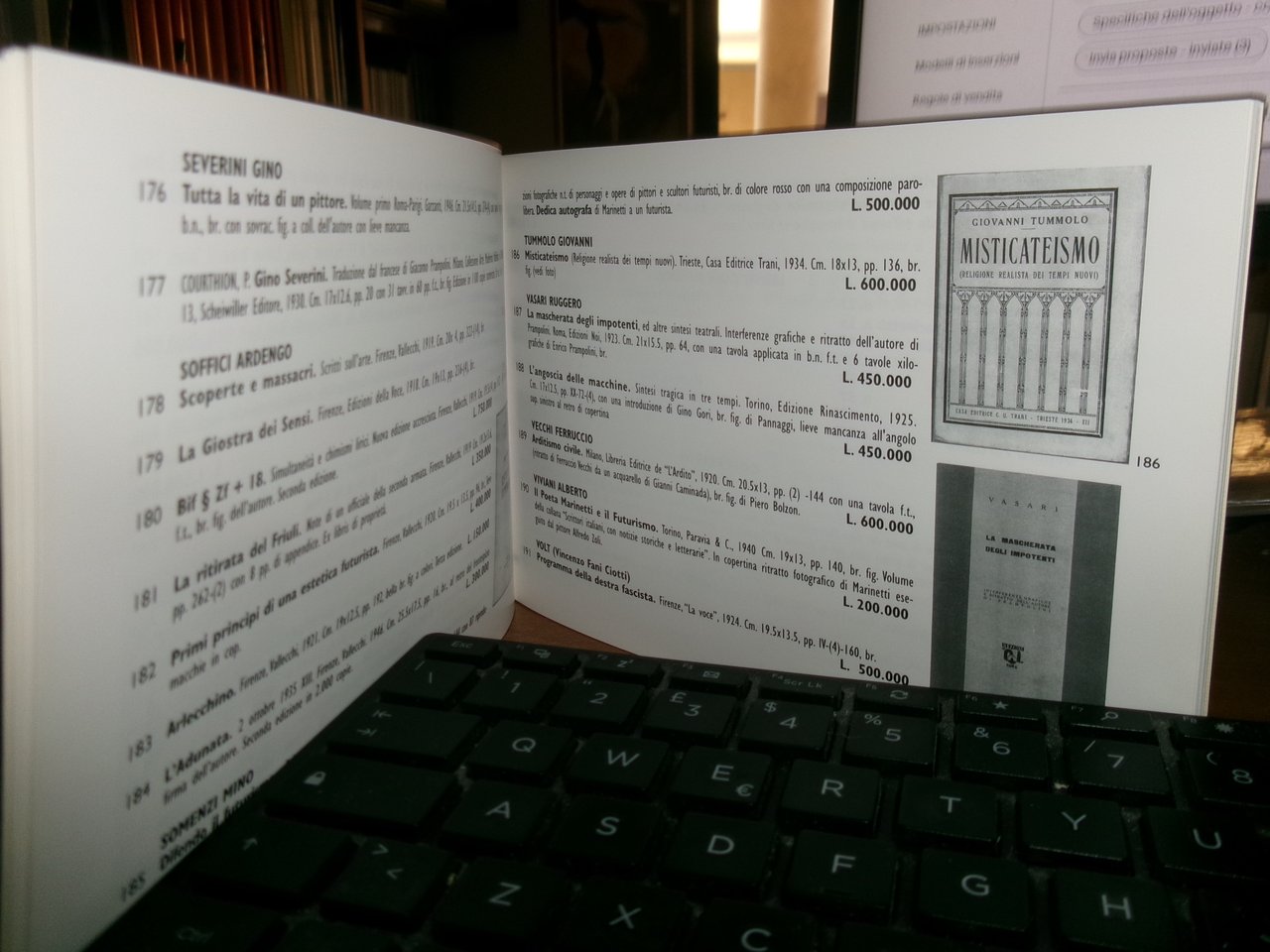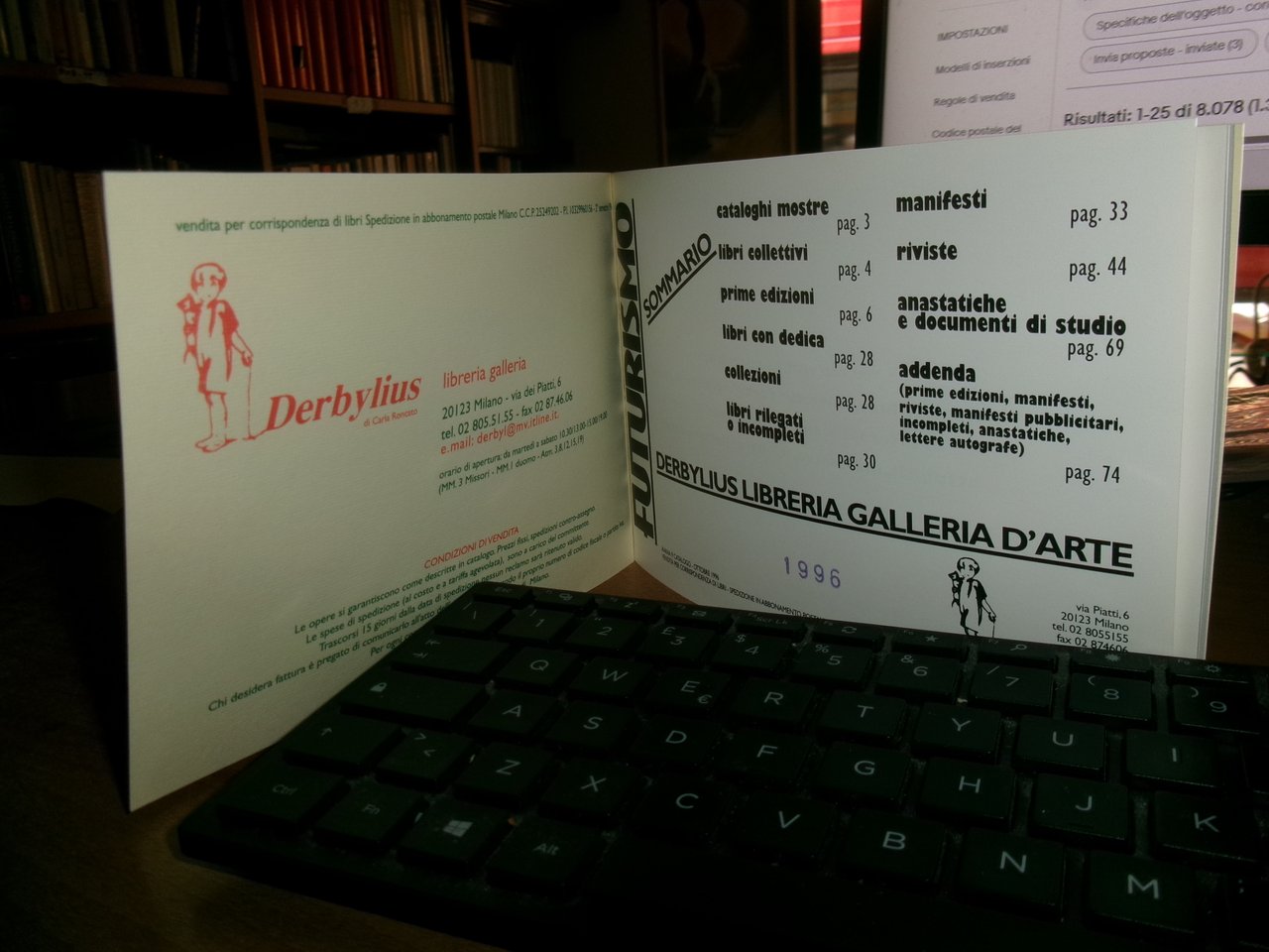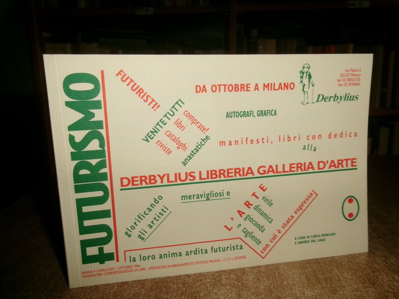 Da Ottobre a Milano. FUTURISMO. Milano, Derbylius Libreria Galleria d' Arte,1996. In-16° oblungo, cart. edit. 80 pp. Descrizione di 510 opere con alcune illustrazioni n.t. e prezzi in lire. Come nuovo. Neg. mob. E entro busta trasp.