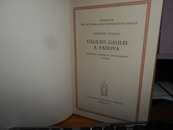 ANTONIO FAVARO. Padova, Editrice Antenore, 1968. GALILEO GALILEI A PADOVA. Ricerche e scoperte, insegnamento scolari. In-8°, tela con titolo in oro entro tassello al dorso, copertine originali conservate. viii, 316, (10) pp. con alcune illustrazioni nel testo e 5 tavole fuori testo. Come nuovo in legatura recente con le brossure originali conservate. Uff. C - I - 6