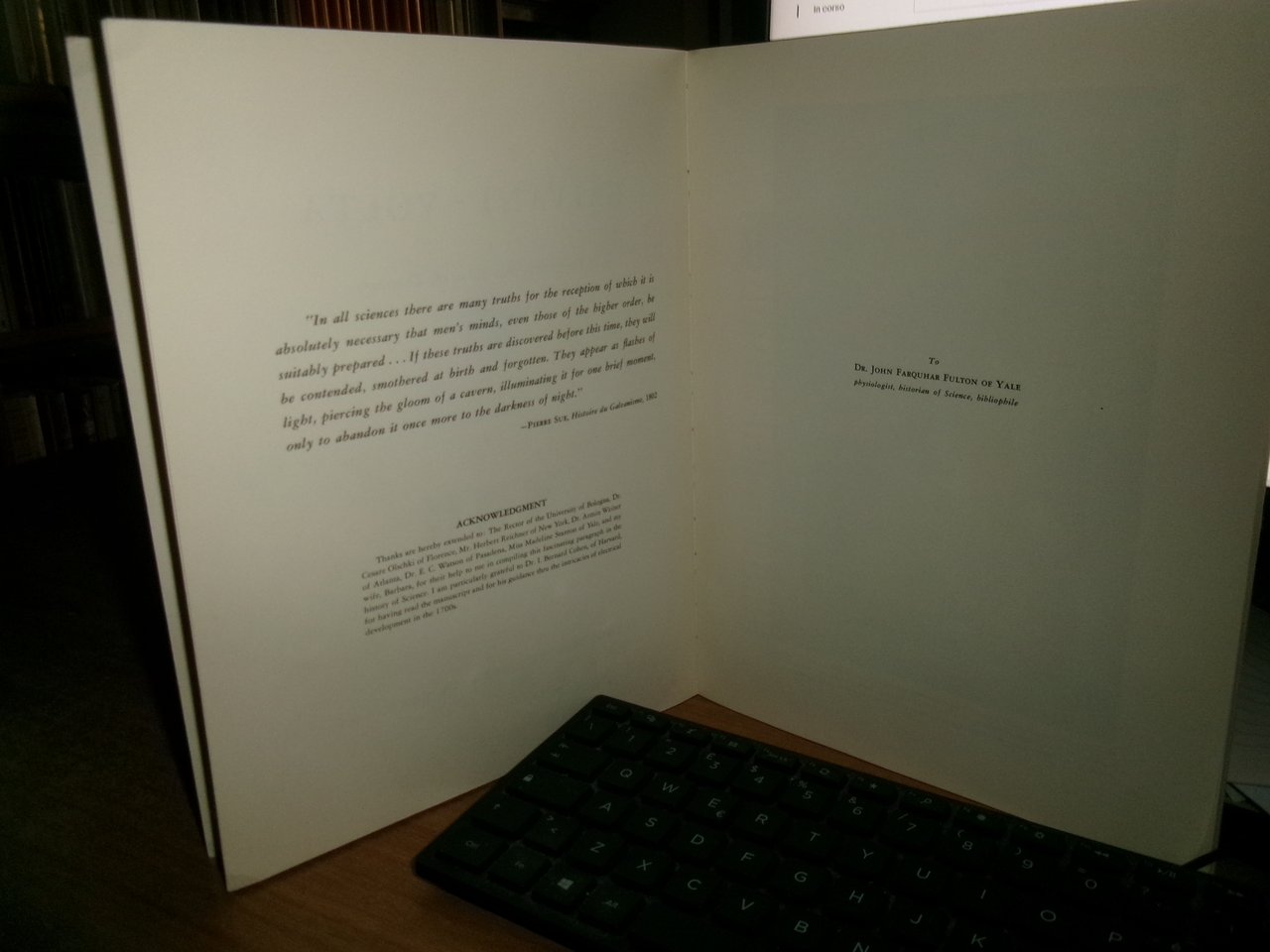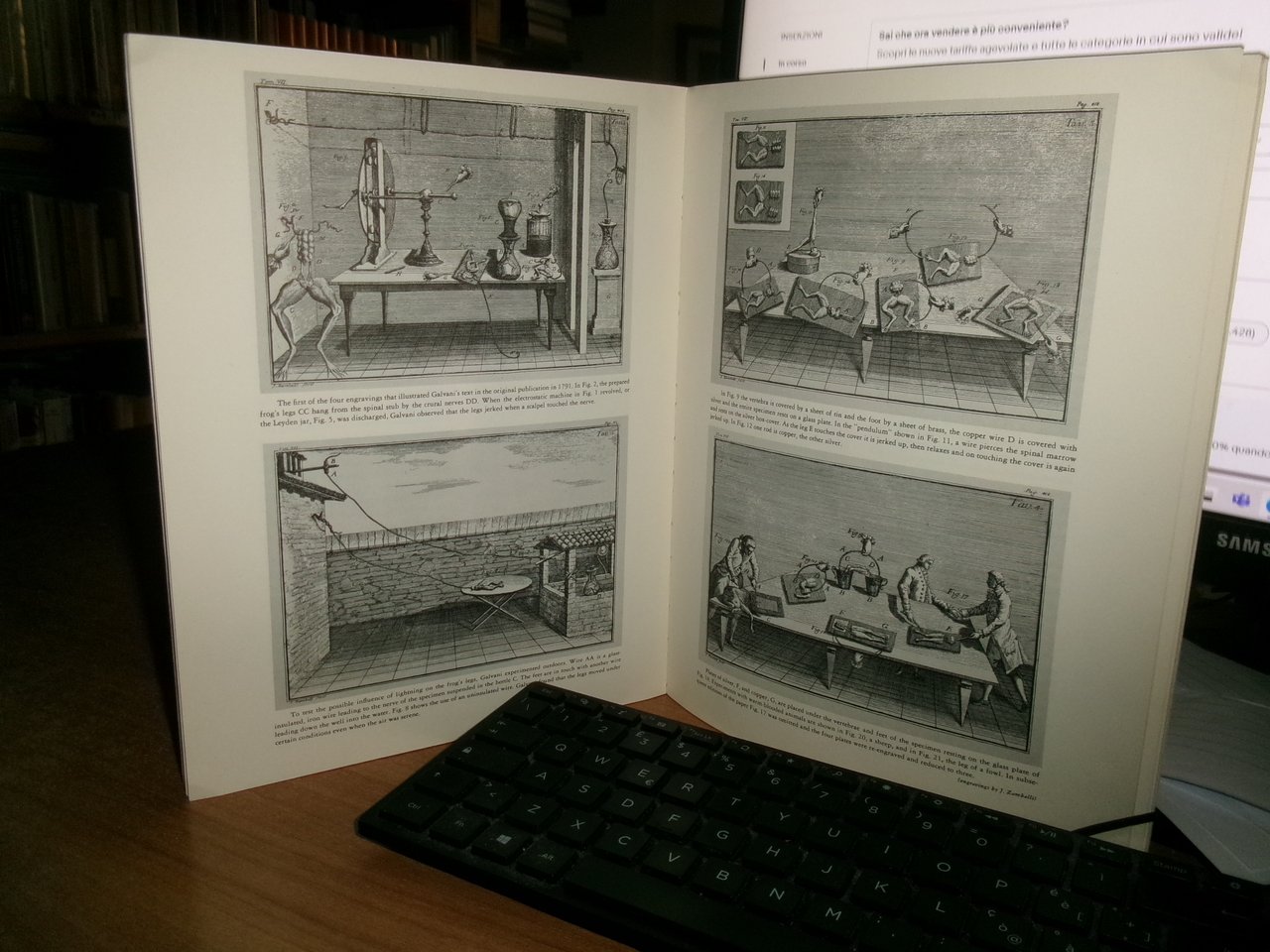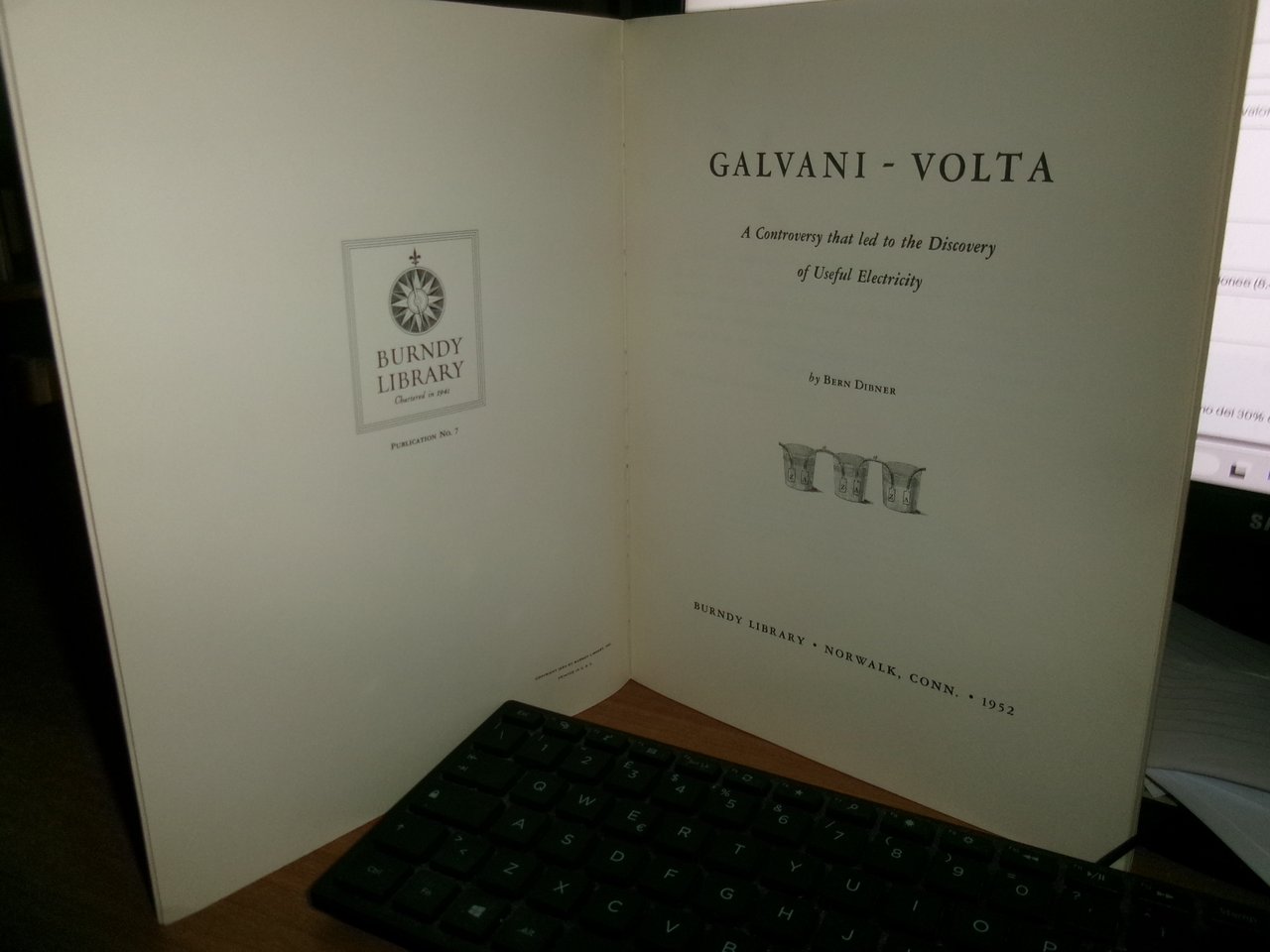 By BERN DIBNER. Norwalk Conn, Burndy Library, 1952. Galvani-Volta. A controversy that led to the discovery of useful electricity. In-8° grande, br. 52 pp. con numerose illustrazioni n.t. Ottimo stato con testo in inglese. Neg. lett. mod. mob. F entro busta trasp.