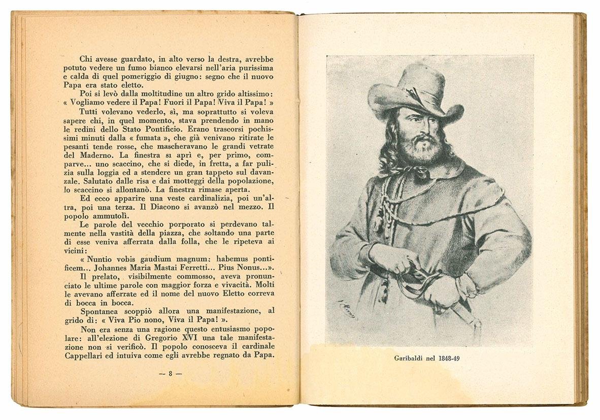 In 16mo (mm 168x121); pp. 71, [1], [4] c. di tav. fuori testo. Sette illustrazioni in bianco e nero fuori testo. Carta leggermente ed uniformemente brunita, lievi aloni marginali. Brossura editoriale. Copertine un po' sporche, piccolo strappo orizzontale alla copeertiina anteriore, minime mancanze marginali. Interessante opera di apologetica garibaldina a sostegno del fascimo repubblicano.