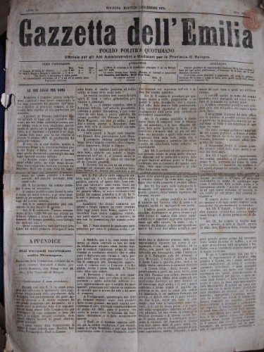 Gazzetta dell'Emilia. Foglio politico quotidiano ufficiale per gli Atti Amministrativi e Giudiziari per la Provincia di Bologna.