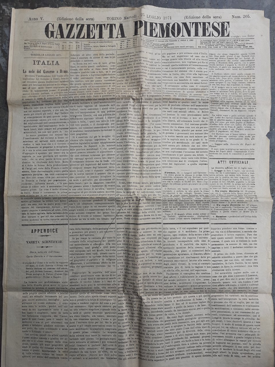 29 numeri edizione della sera anno , 5^ 1871, anno del trasferimento della Capitale a Roma.
