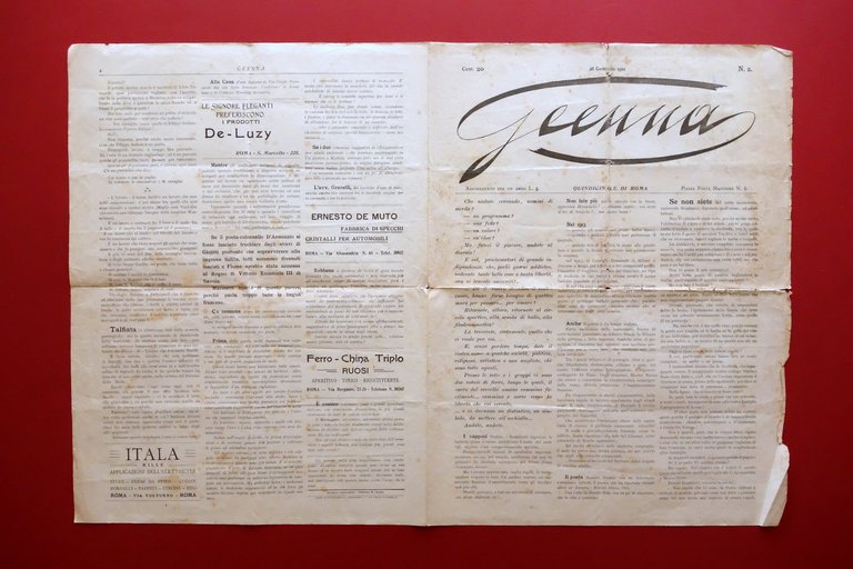 Geenna Giornale Quindicinale di Roma Num. 2 28/1/1921 D'Annunzio Marinetti Raro