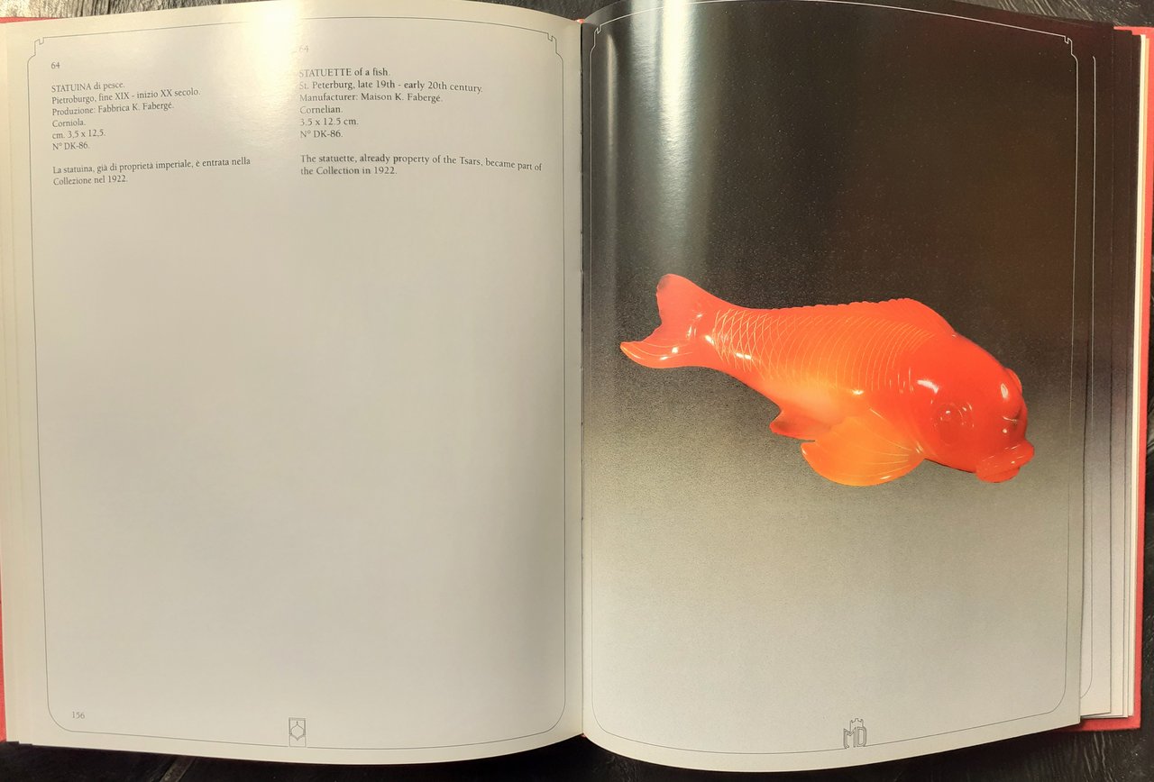 I ed. Catalogo della mostra che si è tenuta presso la Galleria Datrino, Castello di Torre Canavese (prov. Torino) dal 4 aprile al 4 luglio del 1994 ca. Organizzazione e catalogo/ Organization and Catalogue: per la Russia Irina Rodimtseva (Direttrice dei Musei Statali del Cremlino di Mosca) - Valentina Narojnaia - Emma Chernukna (Curatrici del Museo Statale del Cremlino di Mosca). Organizzazione generale in Italia: Marco Datrino. Testi in italiano/ inglese (trad. italiano - inglese: Bianca Petitti, Barbara Borrattaz. In-4, pp. 216, rilegatura in tuttatela rossa con titoli in oro al piatto e al dorso. Con illustrazioni a colori, 90 oggetti in catalogo con scheda e relativa immagine a colori, due alberi genealogici in nero. E una pubblicità a colori dell'Hotel Metropol in Moscow. Sguardie illustrate con una antica carta color seppia di Mosca. Fotografie: Sverdlov A. V. - Grafica e impaginazione catalogo: Pier Giorgio Naretto. Stato buono (manca la sovraccoperta). Indice: presentazioni (Federico Di Roberto, Ambasciatore d'Italia a Mosca/ Italian Ambassador in Moscow - Luigi Sergio Ricca, Presidente della Provincia di Torino/ President of the Province of Turin - I.A. Rodimtzeva; Il Direttore del Museo statale storico-culturale "Il Cremlino di Mosca"/ Director of the Historic-Cultural State Museum "The Moscow Kremlin" - Marco Datrino) - saggio introduttivo/ prolusion; Valentina Narojnaia-Emma Chernukna; Curatrici del Museo statale storico-culturale "Il Cremlino di Mosca"/ Curators of the Historic-Cultural State Museum "The Moscow Kremlin" - Catalogo/ Catalogue (Orafi in Russia dal XII al XVIII secolo/ Goldsmiths in Russia from XII to XVIII century - Gioiellieri Russi e Fabergé dal XIX al XX secolo/ Russian goldsmiths and Fabergé from XIX to XX century - Gioiellieri russi contemporanei/ Contemporary Russian Jewellers alberi genealogici (Dinastia dei Romanov (dal XVII al XX secolo/ Romanov Dinasty (XVII-early XX century - Granduchi di Mosca e di Vladimir, gli Zar e gli Imperatori di tutta la Russia. Dinastia di Rjurik (Riurikovici) (Discendenza del Granduca di Vladimir Aleksandr Nevskij)/ Great Dukes of Moscow and Vladimir, Czars and Emperors of all Russia. Dinasty of Rjurik (Riurikovici) (Great Duke Vladimir Aleksandr Nevskij's descendence) ((XIII-XVI centuries).