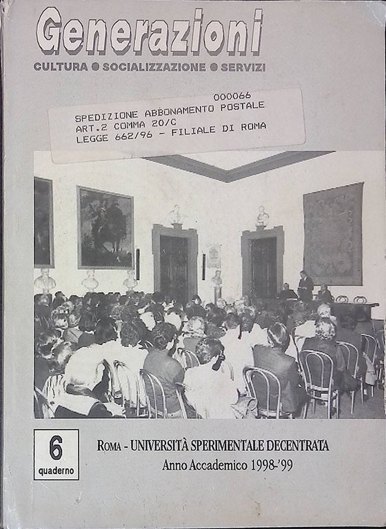 Generazioni. Cultura Socializzazione servizi. Roma Università Sperimentale Decentratat. Anno XVII, quaderno 6